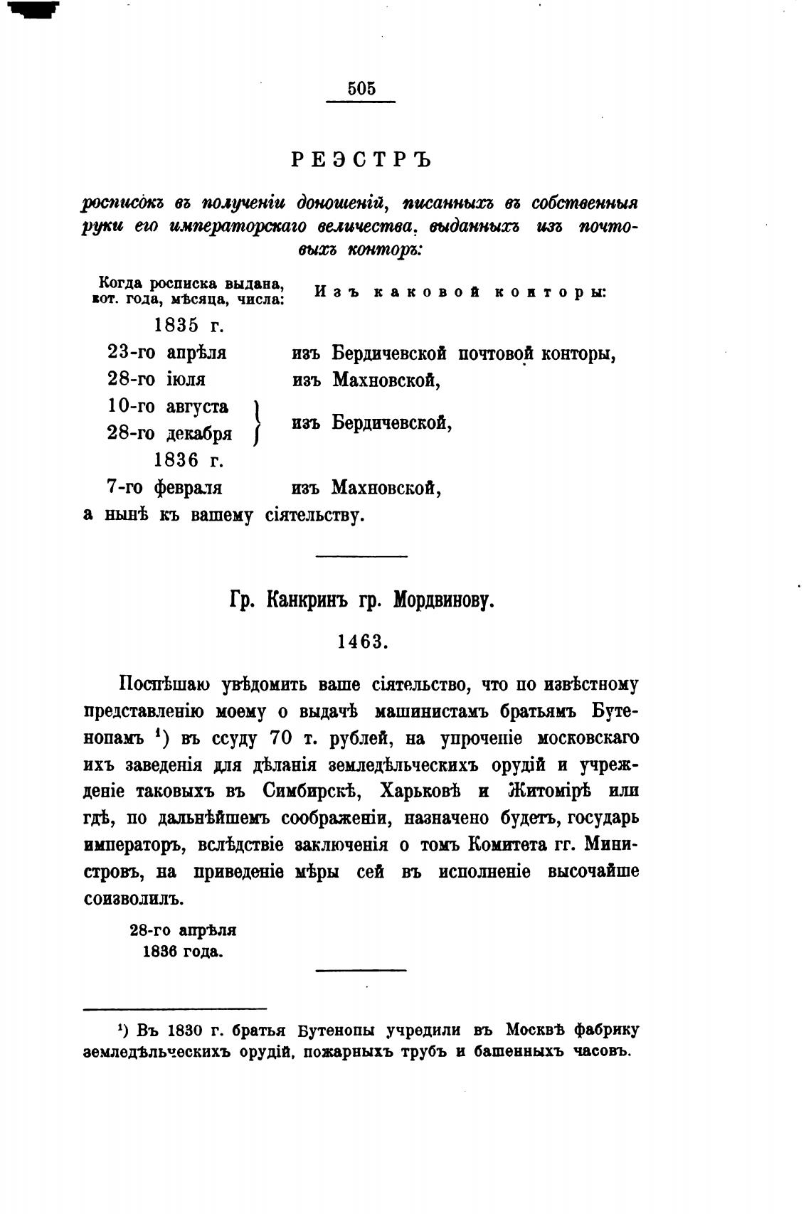 Гр. Канкринъ гр. Мордвинову.