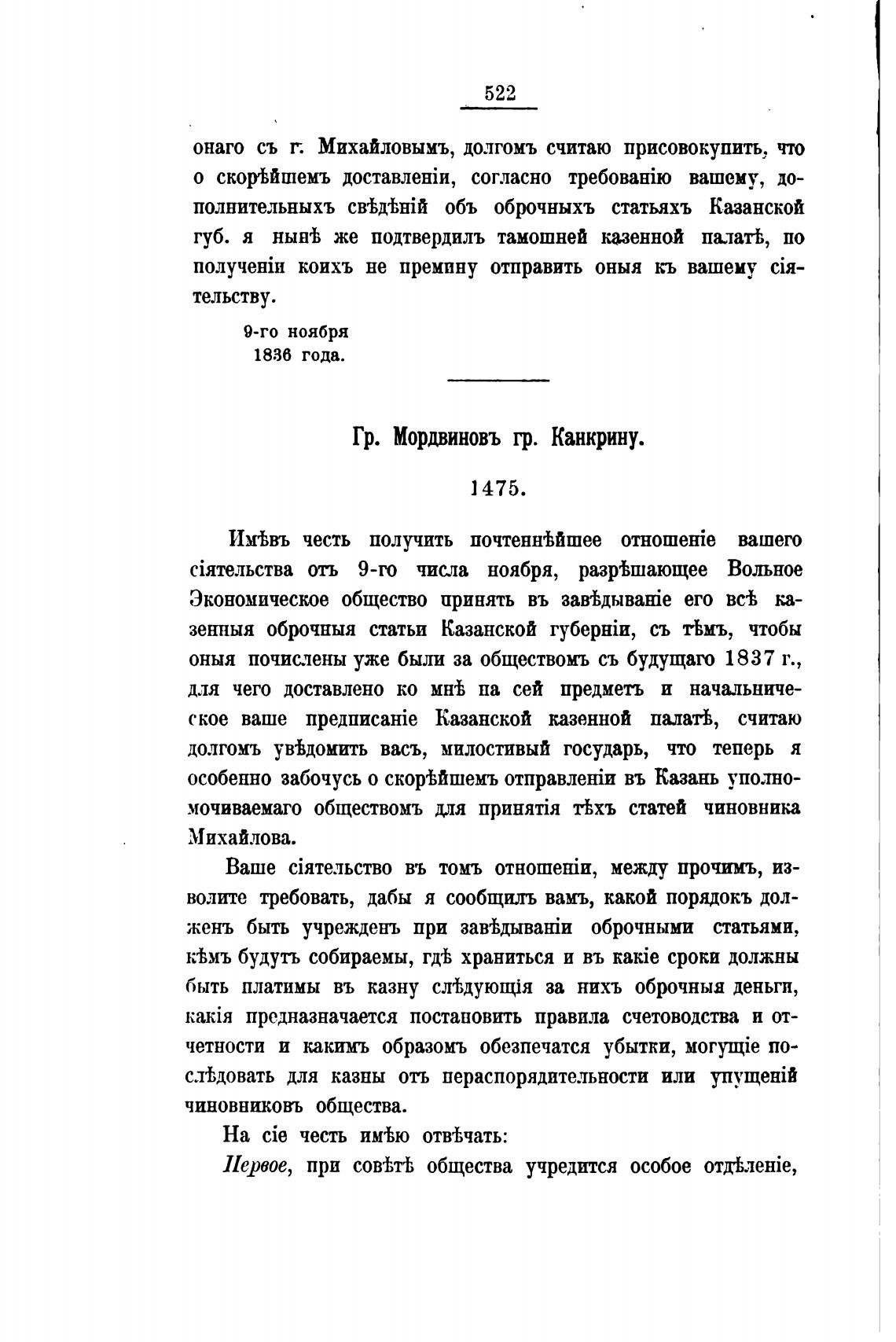 Гр. Мордвиновъ гр. Канкрину.