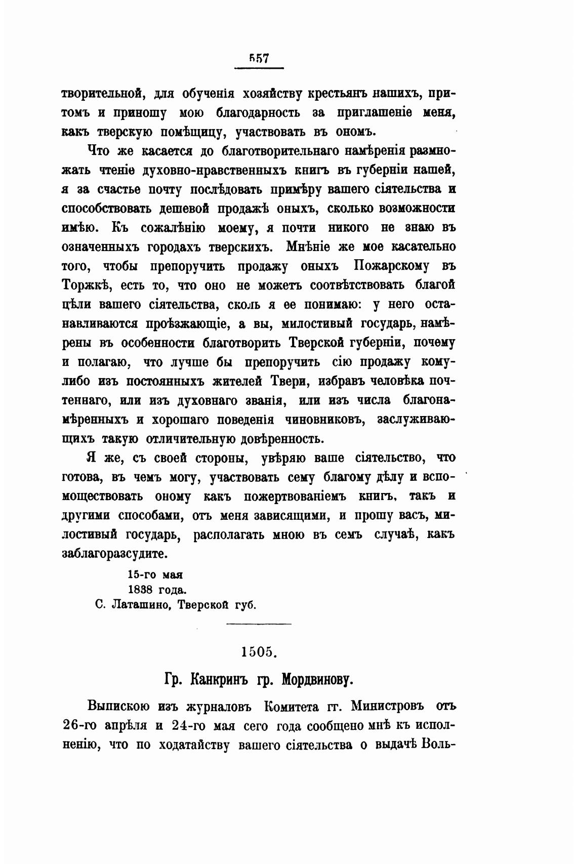 Гр. Канкринъ гр. Мордвинову.