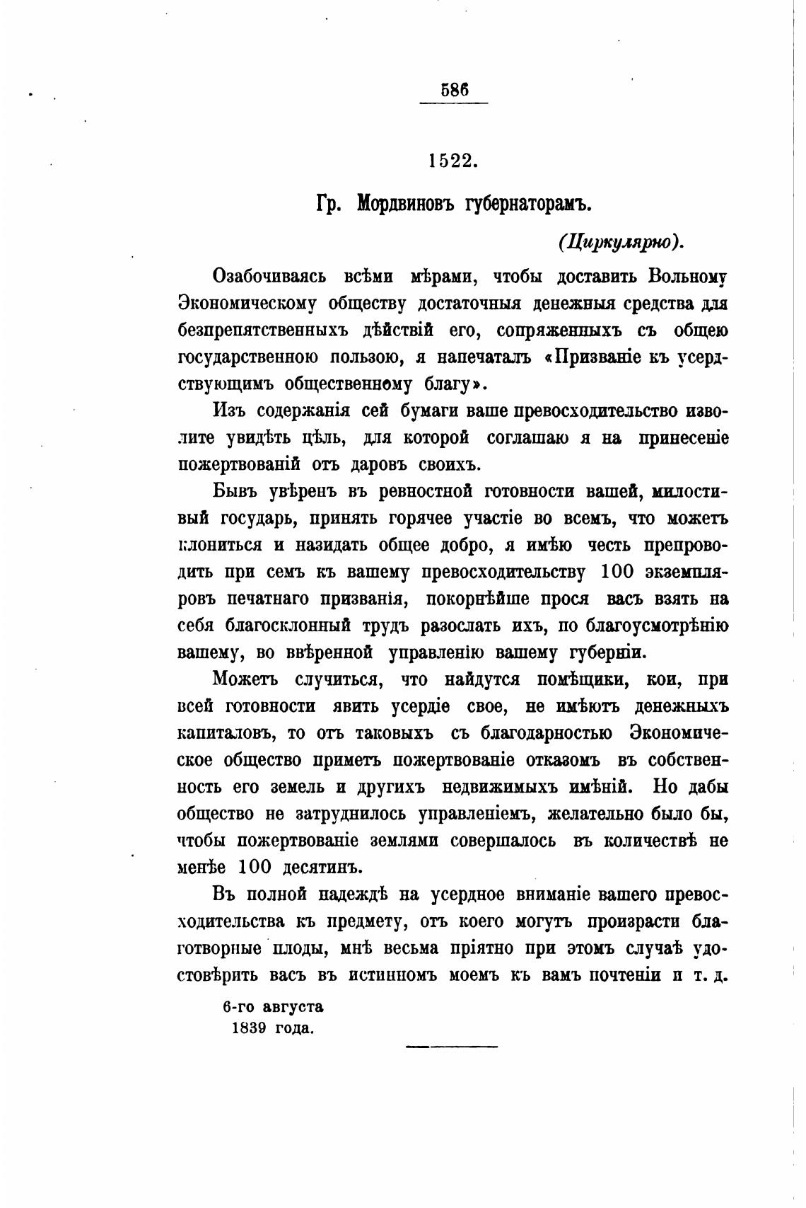 Гр. Мордвиновъ губернаторамъ.