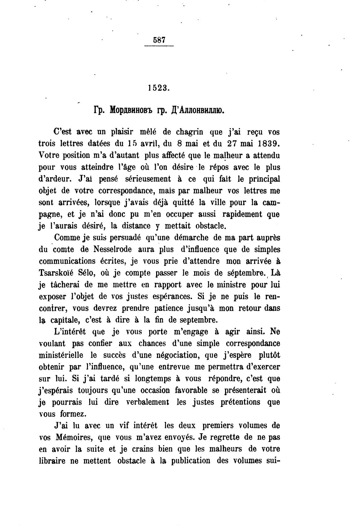 Гр. Мордвиновъ гр. Д'Аллонвиллю.
