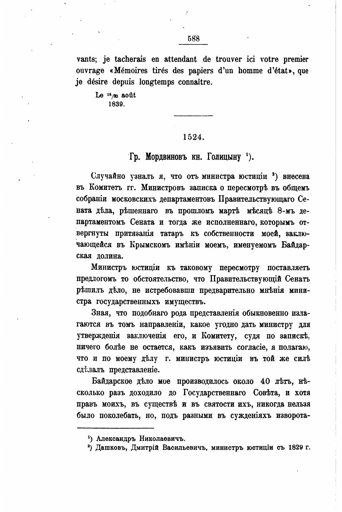 Гр. Мордвиновъ кн. Голицыну 1).
