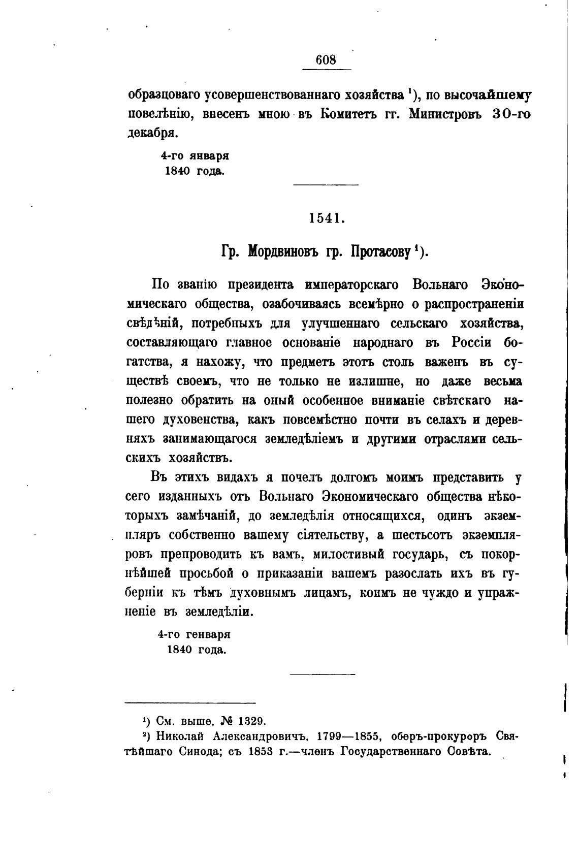 Гр. Мордвиновъ гр. Пртаеову 1).
