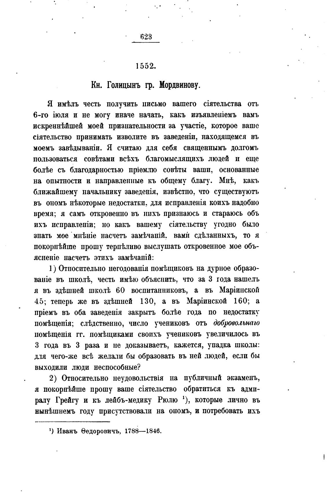 Кн. Голицынъ гр. Мордвинову.