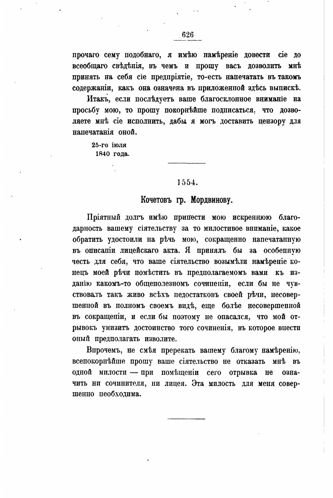 Кочетовъ гр. Мордвинову.