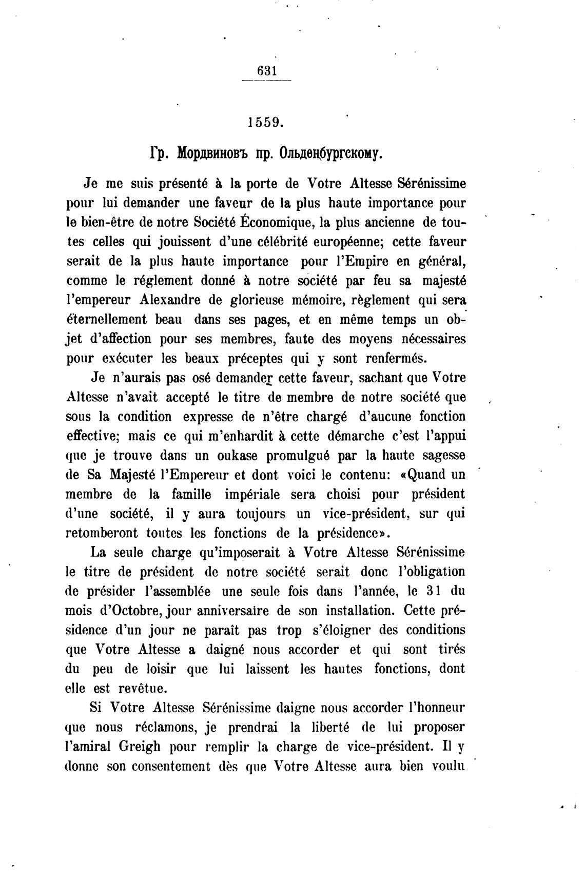 Гр. Мордвиновъ пр. Ольдещбургскому.