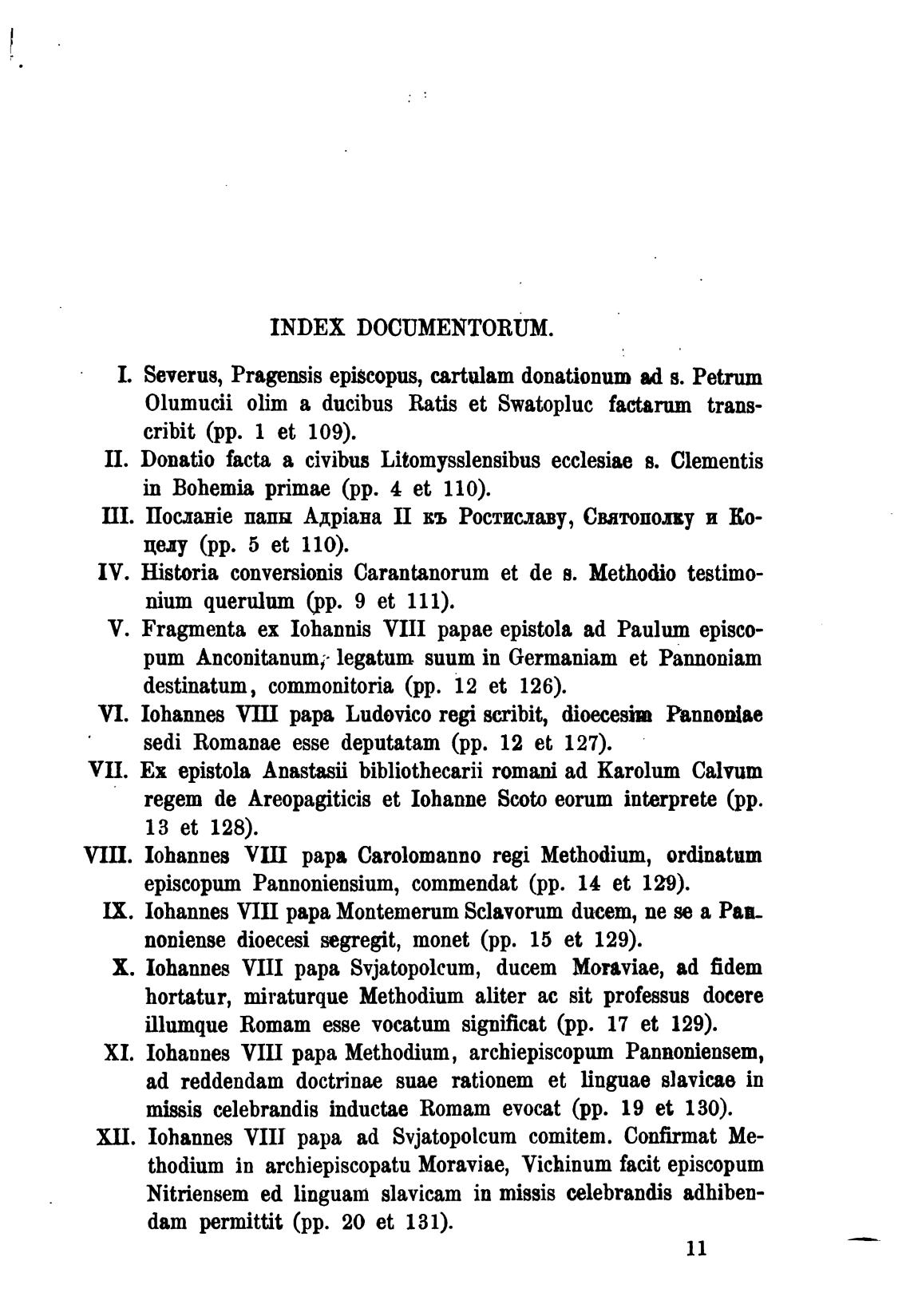 INDEX DOCUMENTORUM.