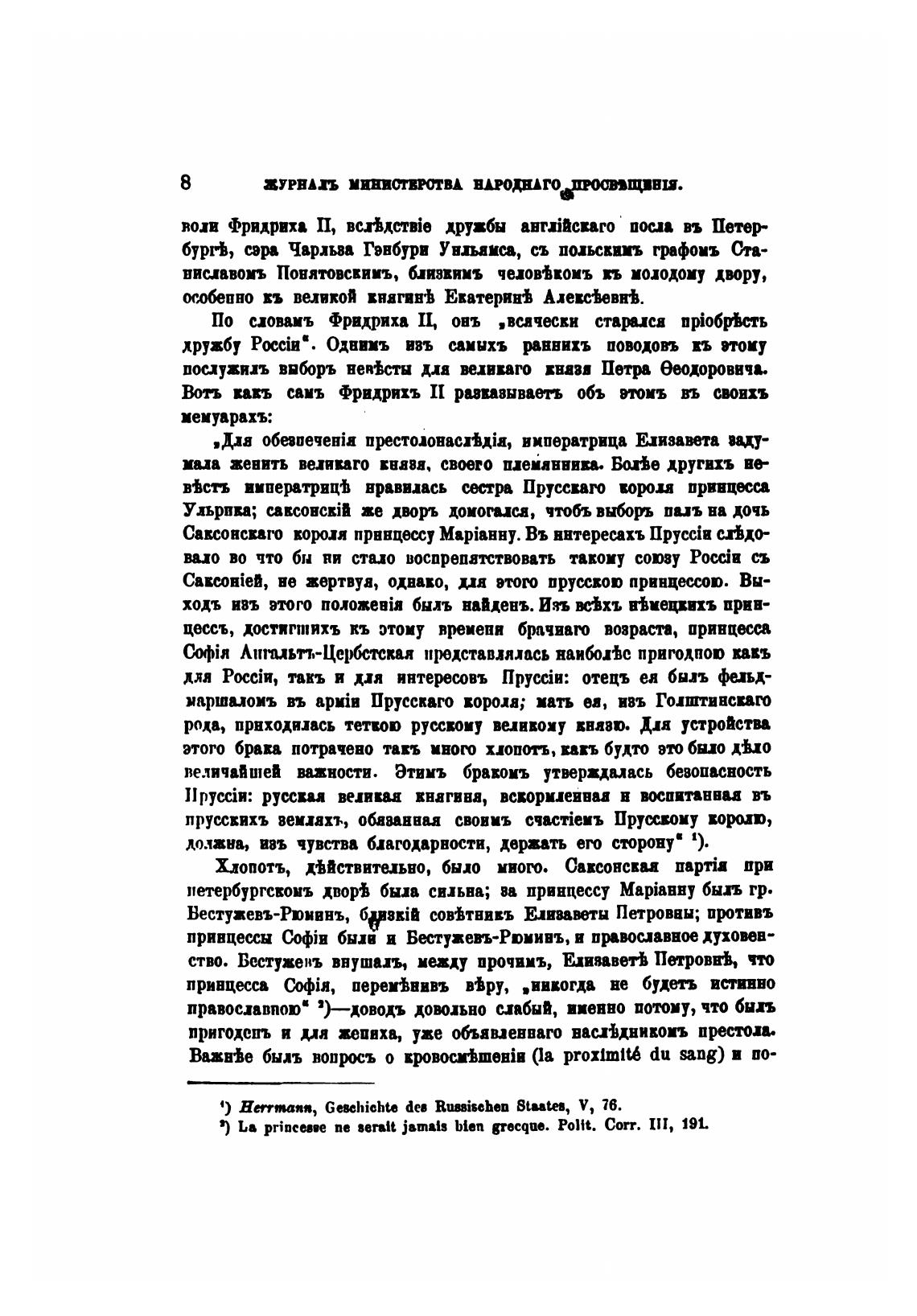 CakB0Hien, ве жертвуа, однако, џа этот прусскою принцессою. Вы-