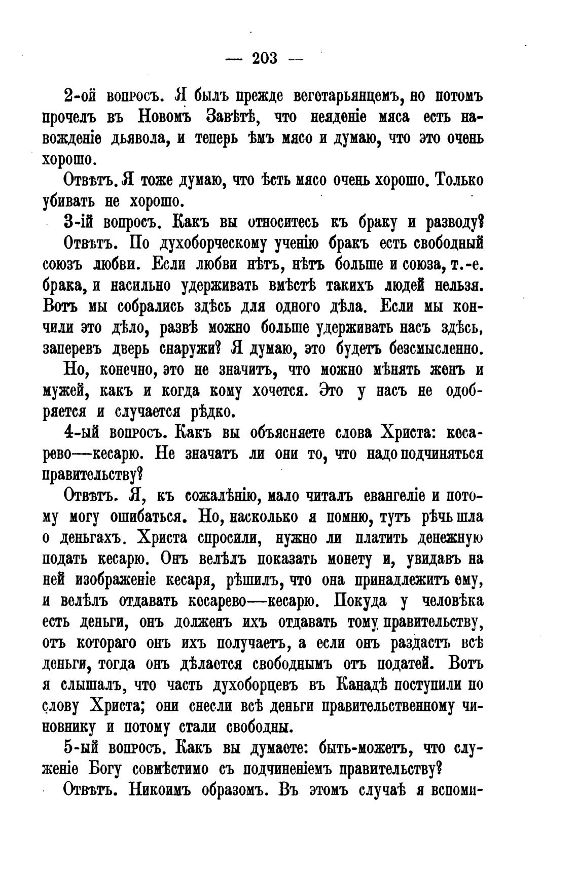 Отвыъ. По духоборческому бракъ есть свободный