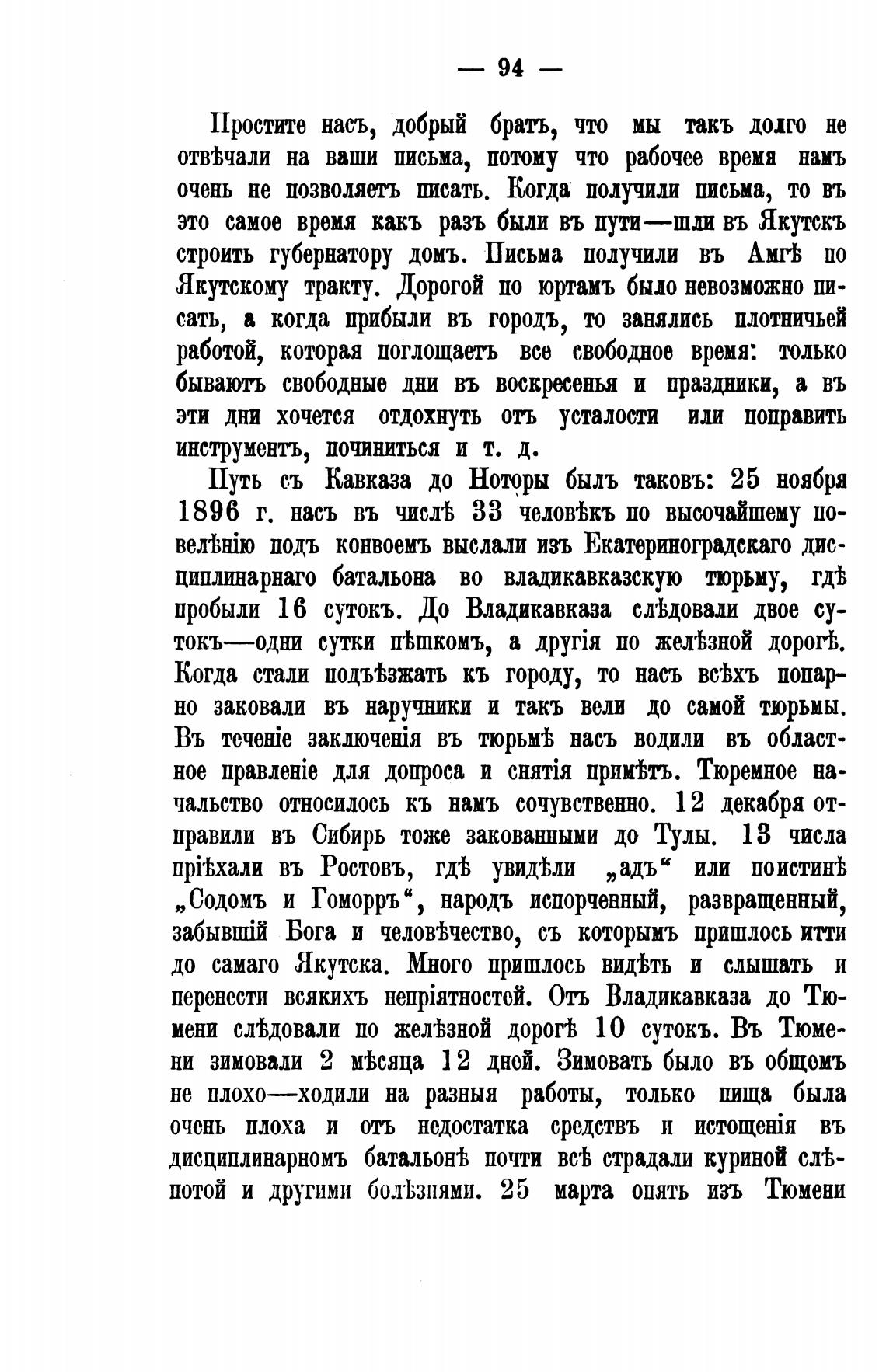 мени слдовали по желзной дорой 10 сутокъ. Въ Тюме-