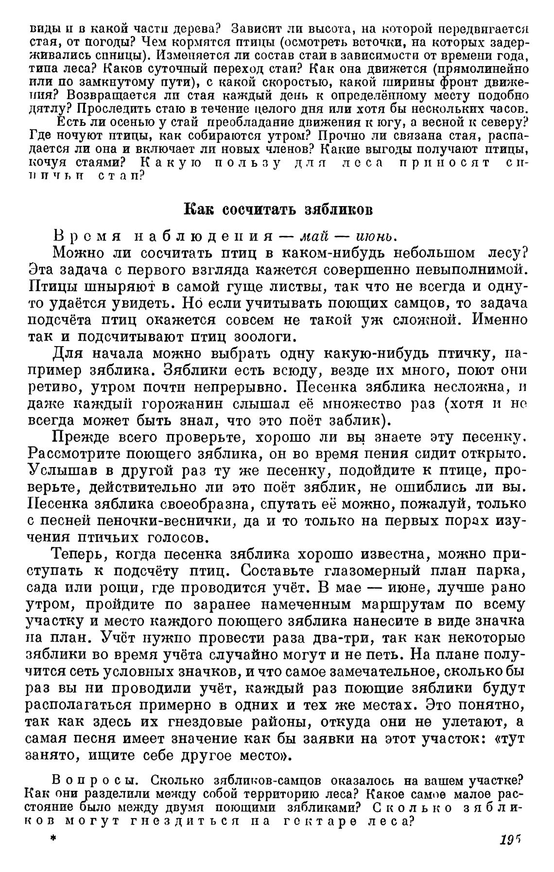 В о п р о с ы. Сколько зябликов-самцов оказалось на вашем участке?