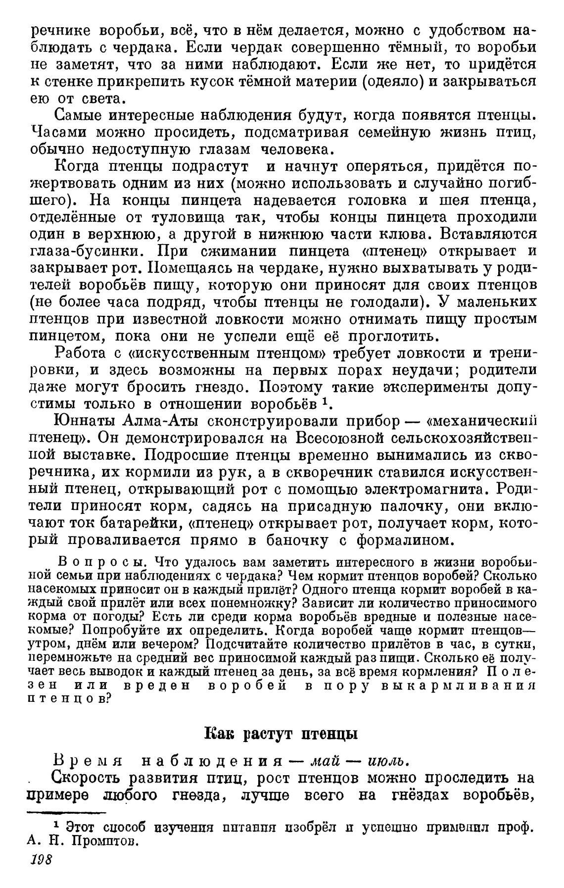 речника, их кормили из рук, а в скворечник ставился искусствен-
