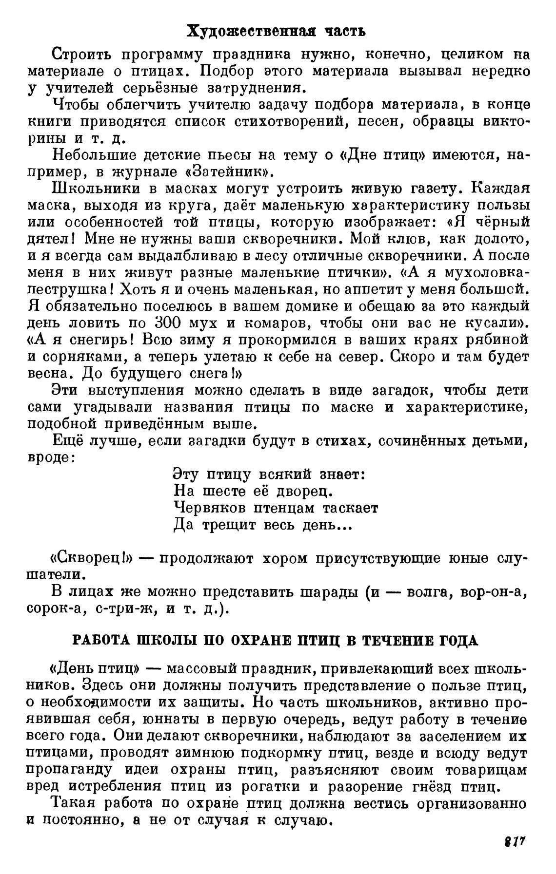 ников. Здесь они должны получить представление о пользе птиц,