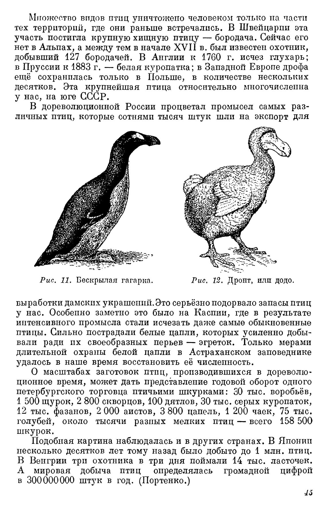 О масштабах заготовок птиц, производившихся в дореволю-