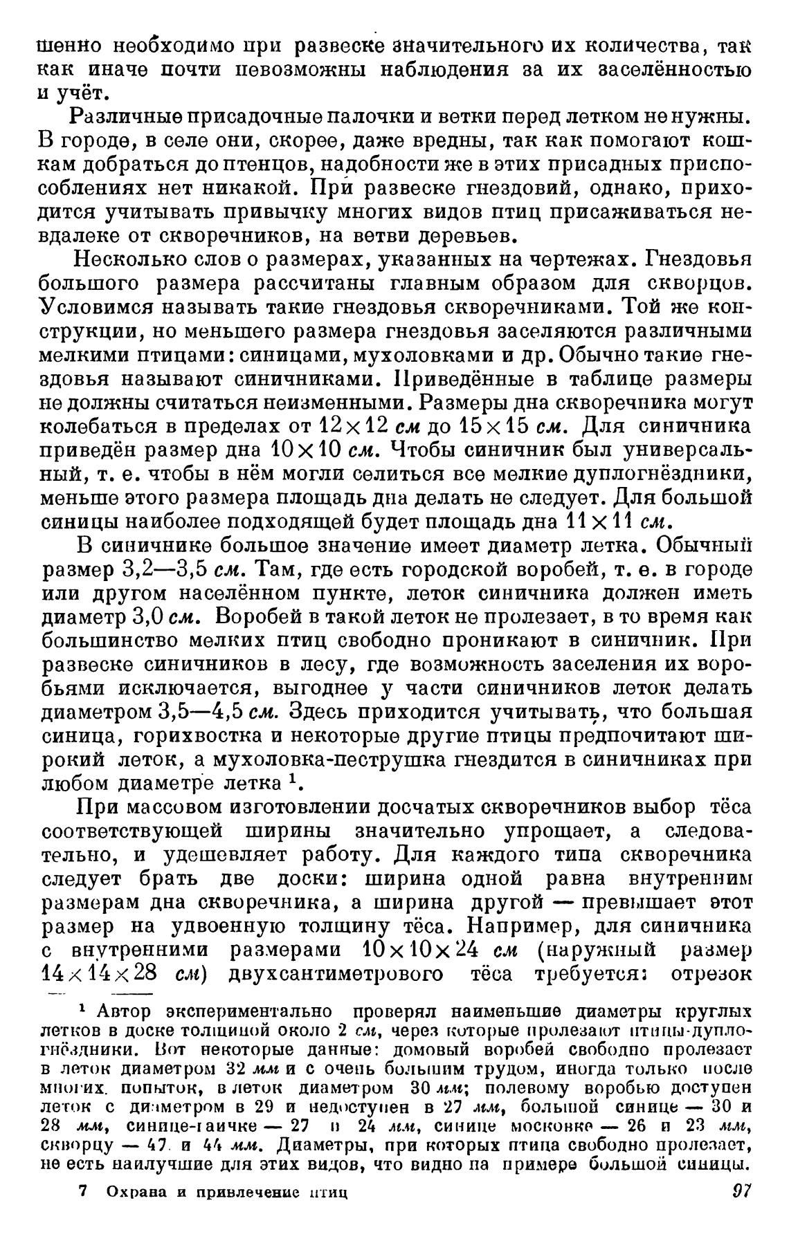 Несколько слов о размерах, указанных на чертежах. Гнездовья
