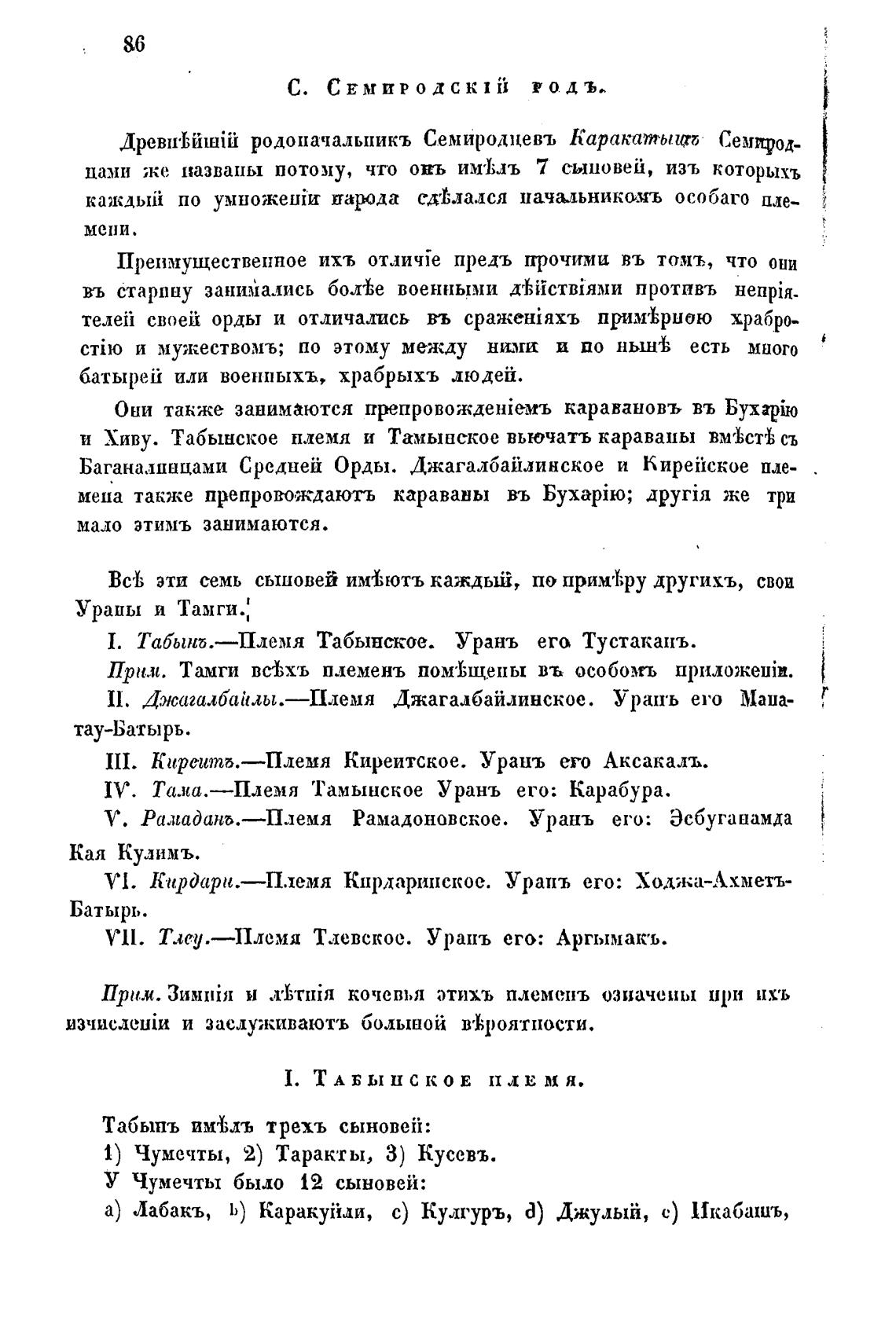 1. ТаЯШб.—Племя Табынское. У рань его Тустаканъ.