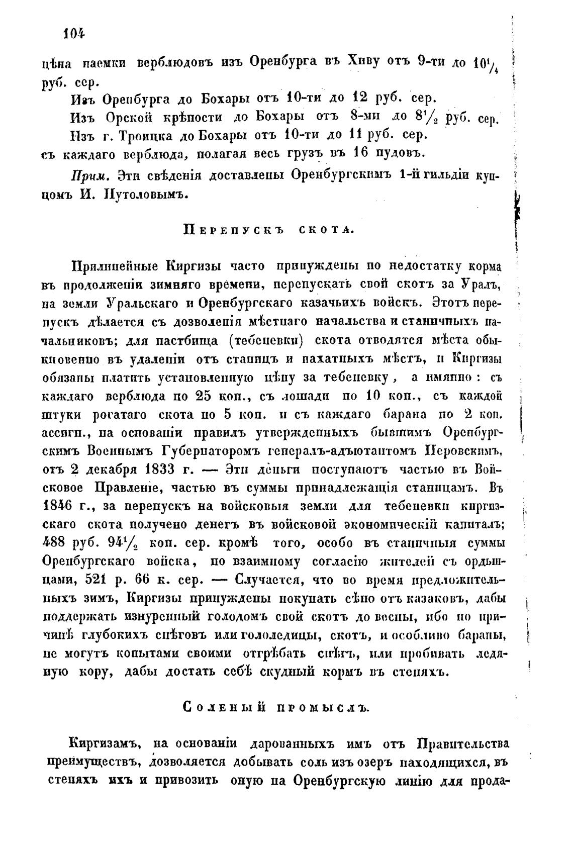 Изъ Орской к1Йпости до Бохары отъ 8-ми до 81/2 руб. сер.