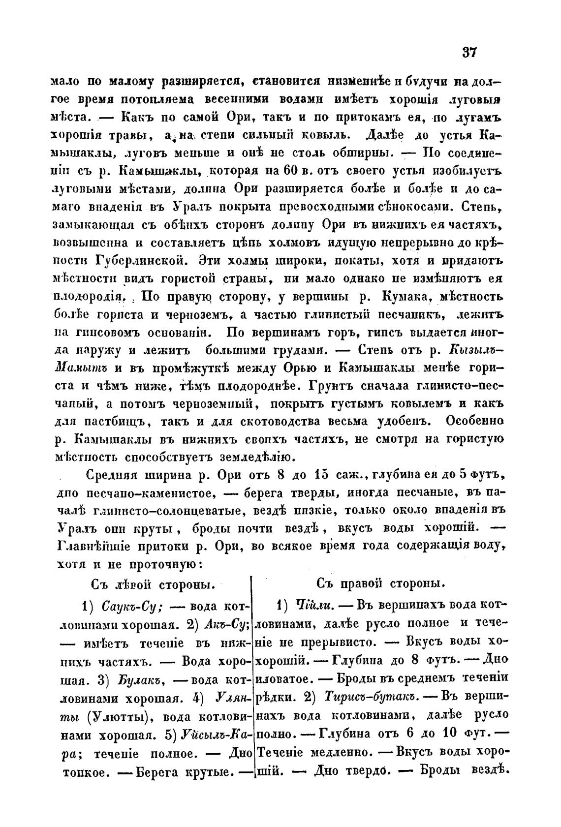 Средняя ширина р. Ори отъ 8 до 15 саж. , глубина ея до 5 Футъ,