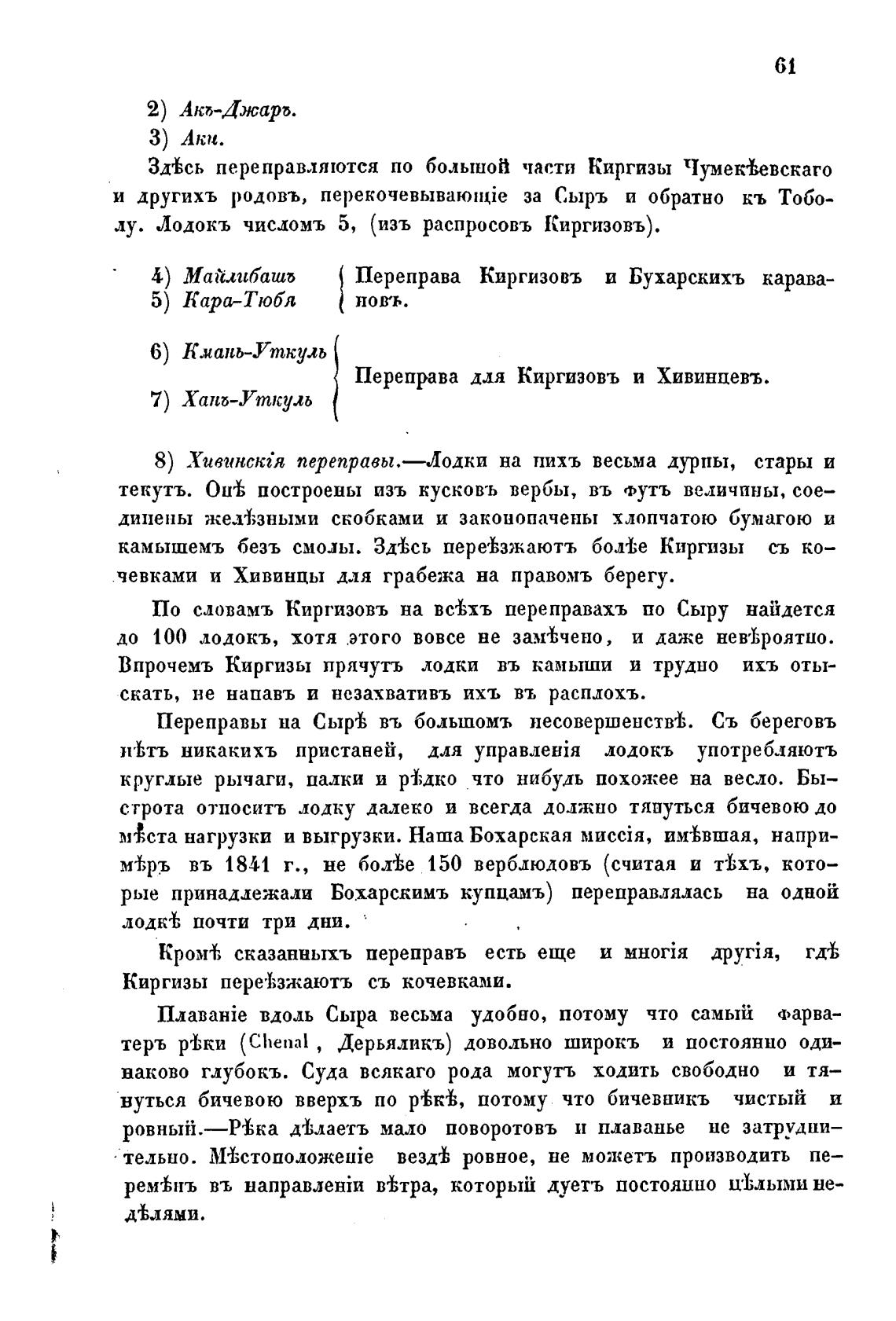 По словамъ Киргизовъ на вс%хъ переправахъ по Сыру найдется