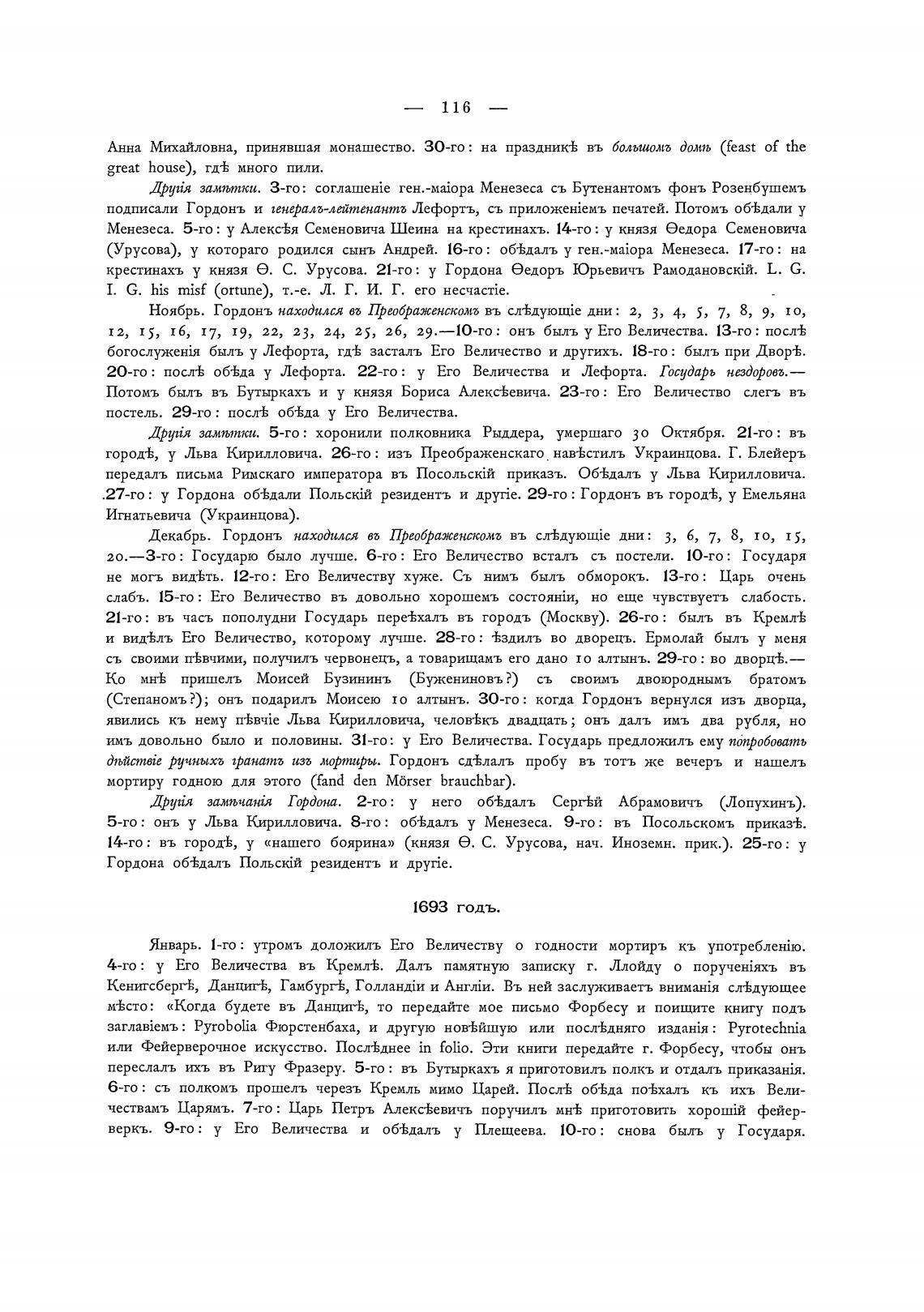 город±, у Льва Кирилловича. 26-го : изъ Преображенскаго нав•Кстилъ Украинцова. Г. Блейеръ