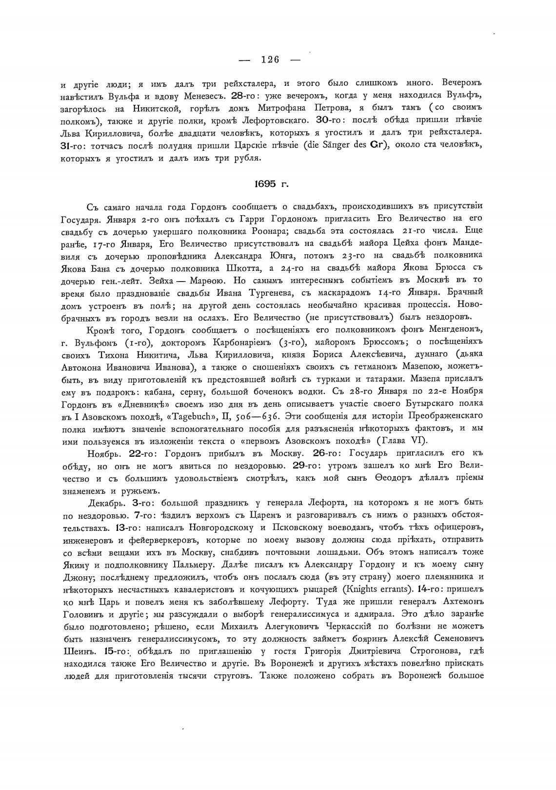 Кром± того, Гордонъ сообщаеть о посЊщекЙяхъ его полковникомъ фонъ Менгденомъ,