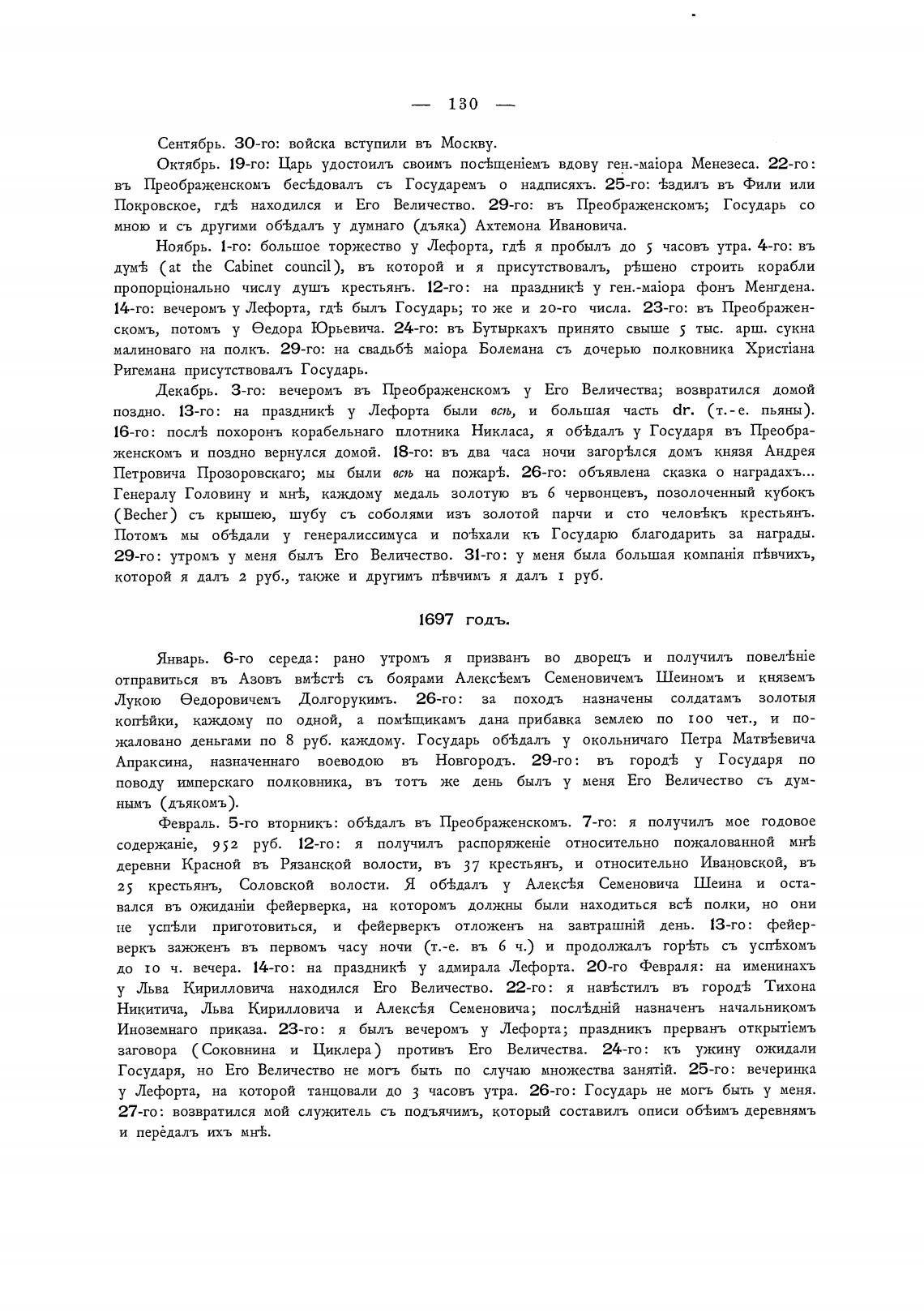 Ноябрь. 1-го: большое торжество у Лефорта, я пробылљ до 5 часовъ утра. 4-го: въ