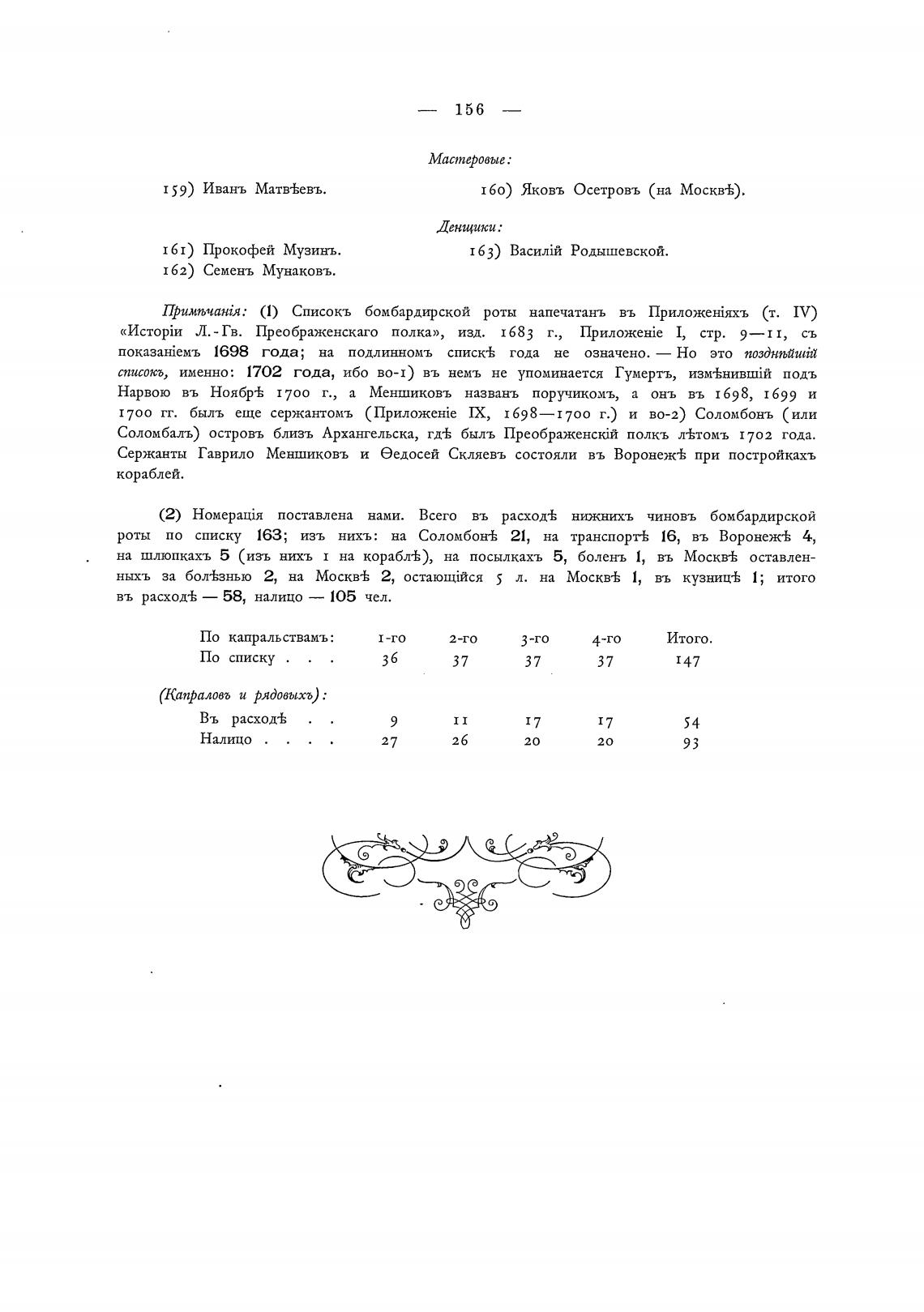 (1) Списокъ бомбардирской роты напечатанъ въ (т. IV)