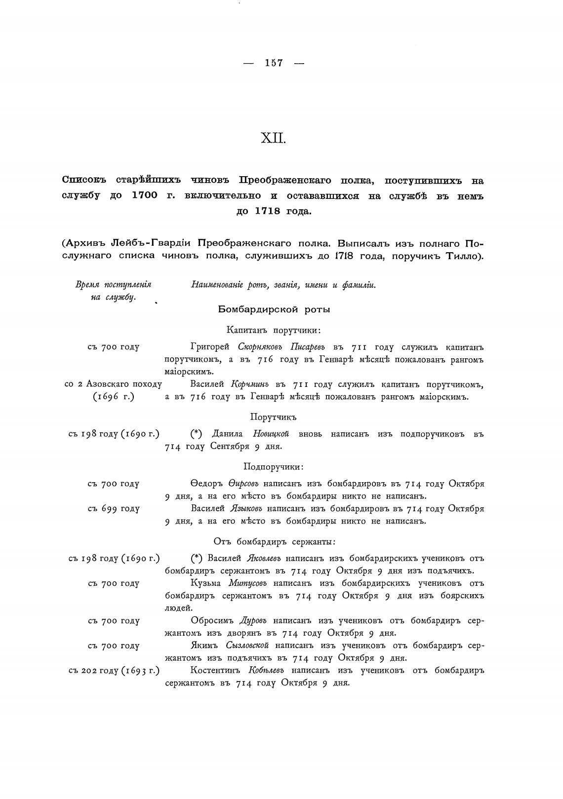 служнаго списка чиновъ полка, служившихъ до 1718 года, поручикъ Тилло).