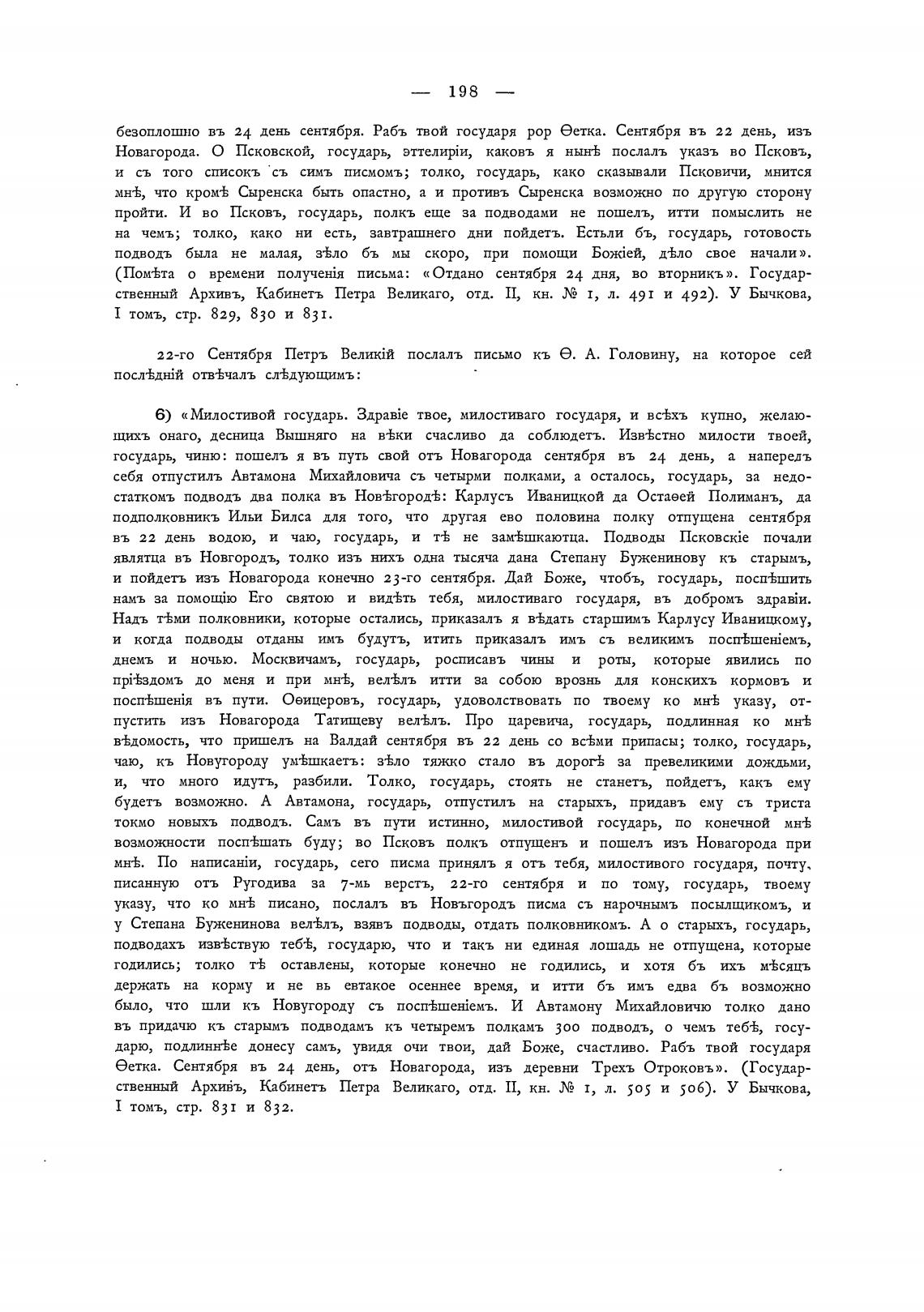 ственный АрхиБъ, Кабинетъ Петра Великаго, отд. II, кн. 1, л. 505 и 506). У Бычкова,