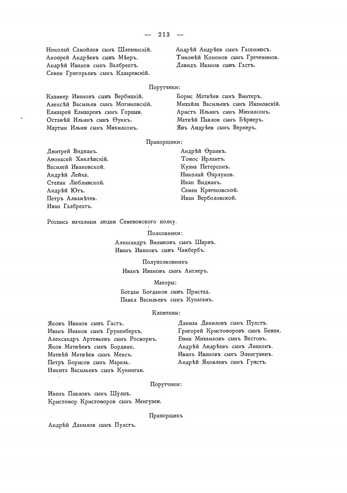 Роспись началным людем Семеновского полку.