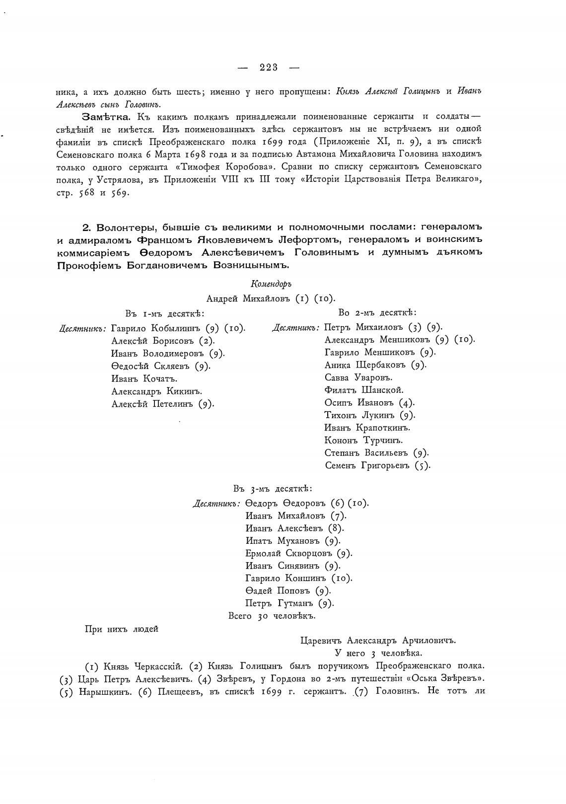 (5) Нарышкинъ. (6) Плещеевъ, въ списк± 1699 г. сержантъ. (7) Головинъ. Не топ ли