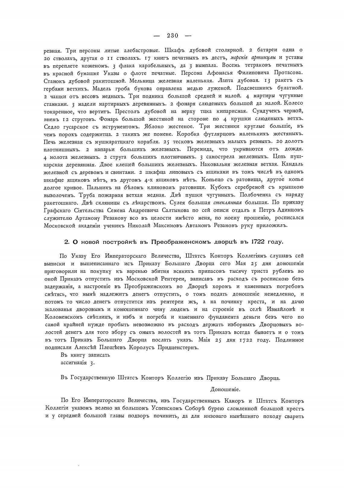 2. О новой постройк-Ь въ Преображенскомъ дворц% въ 1722 году.