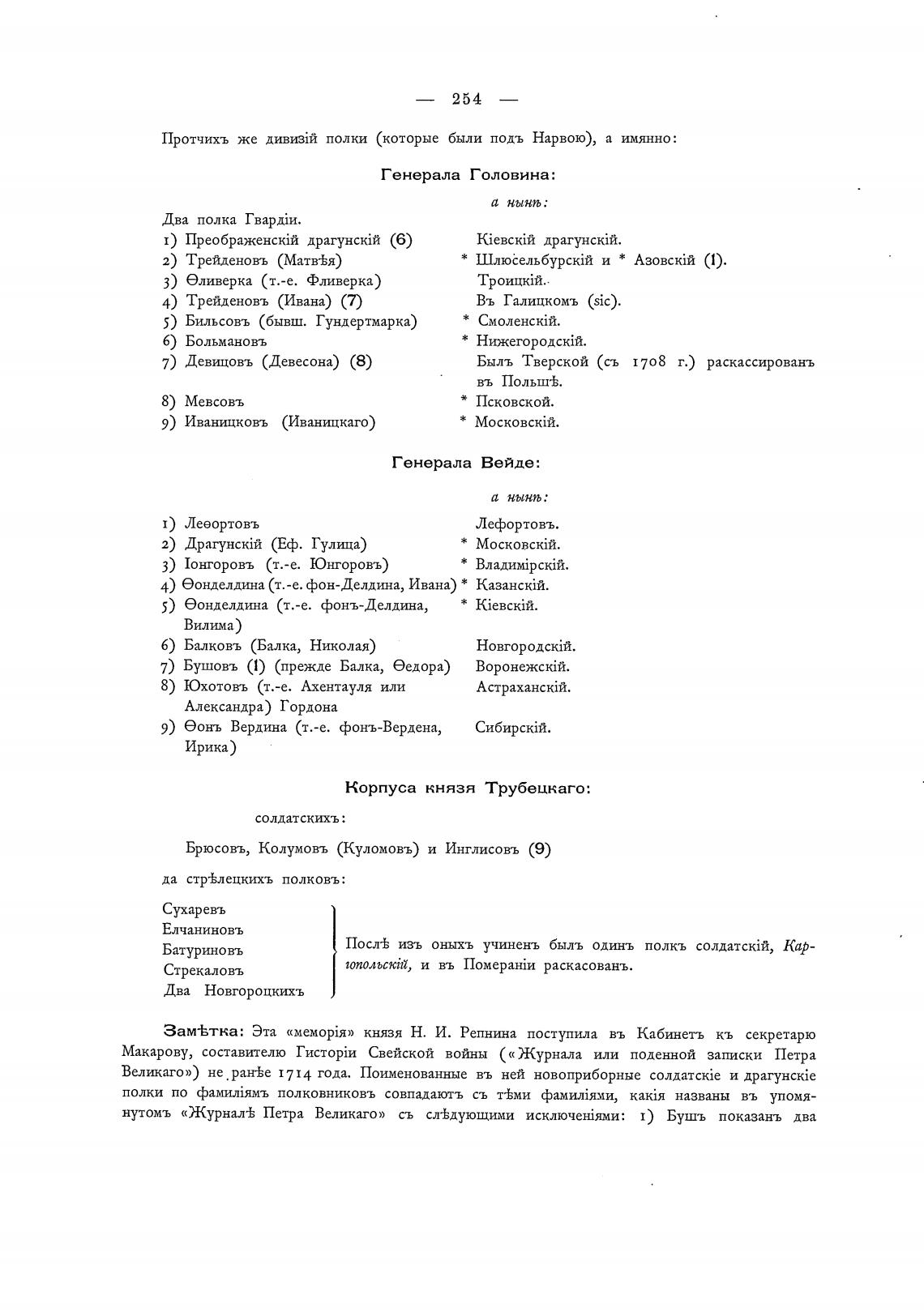 Протчихъ же полки (которые были подъ Нарвою), а имянно: