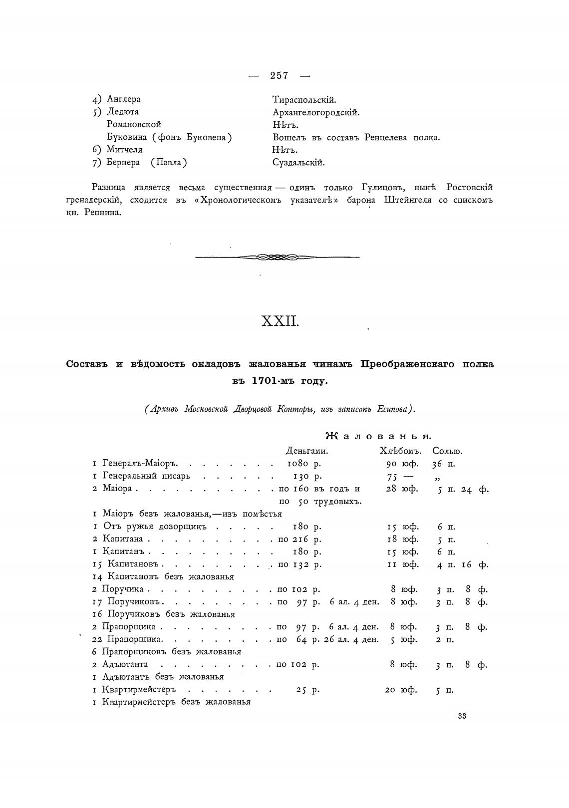 Составь и в±домость овладовъ жалованья чинамь Преображенснаго полва