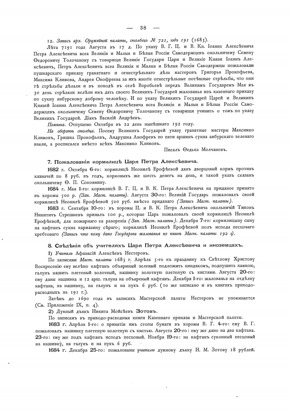 1684 г. Декабря 25-го: пожалованы учителю думному дьяку Н. М. Зотову 18 рублей.
