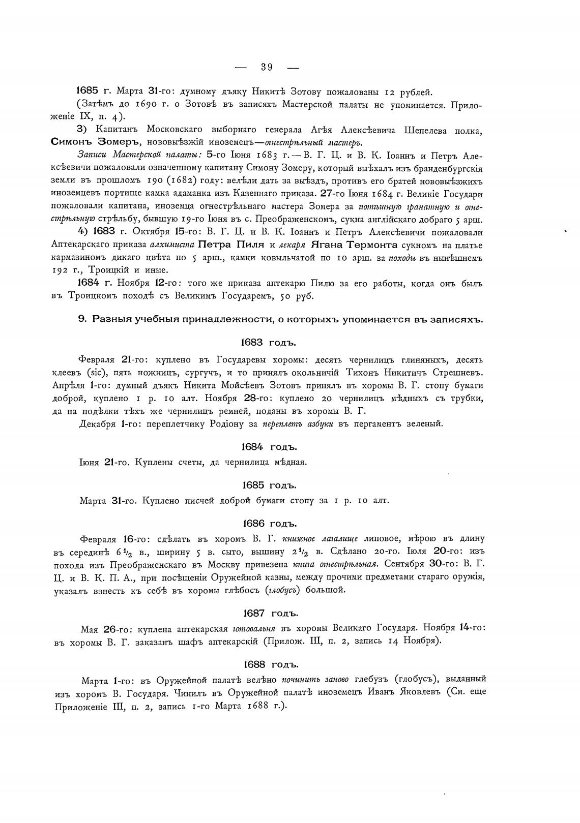 Ш, п. 2, запись 1-го Марта 1688 г.).
