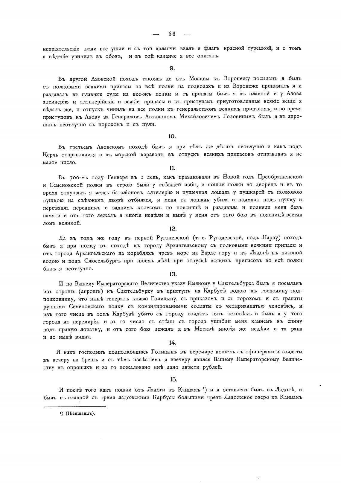 И посл-К того какъ пошли отљ Ладоги кь Канцамъ 1) и я оставленљ быль въ Ладогь, и
