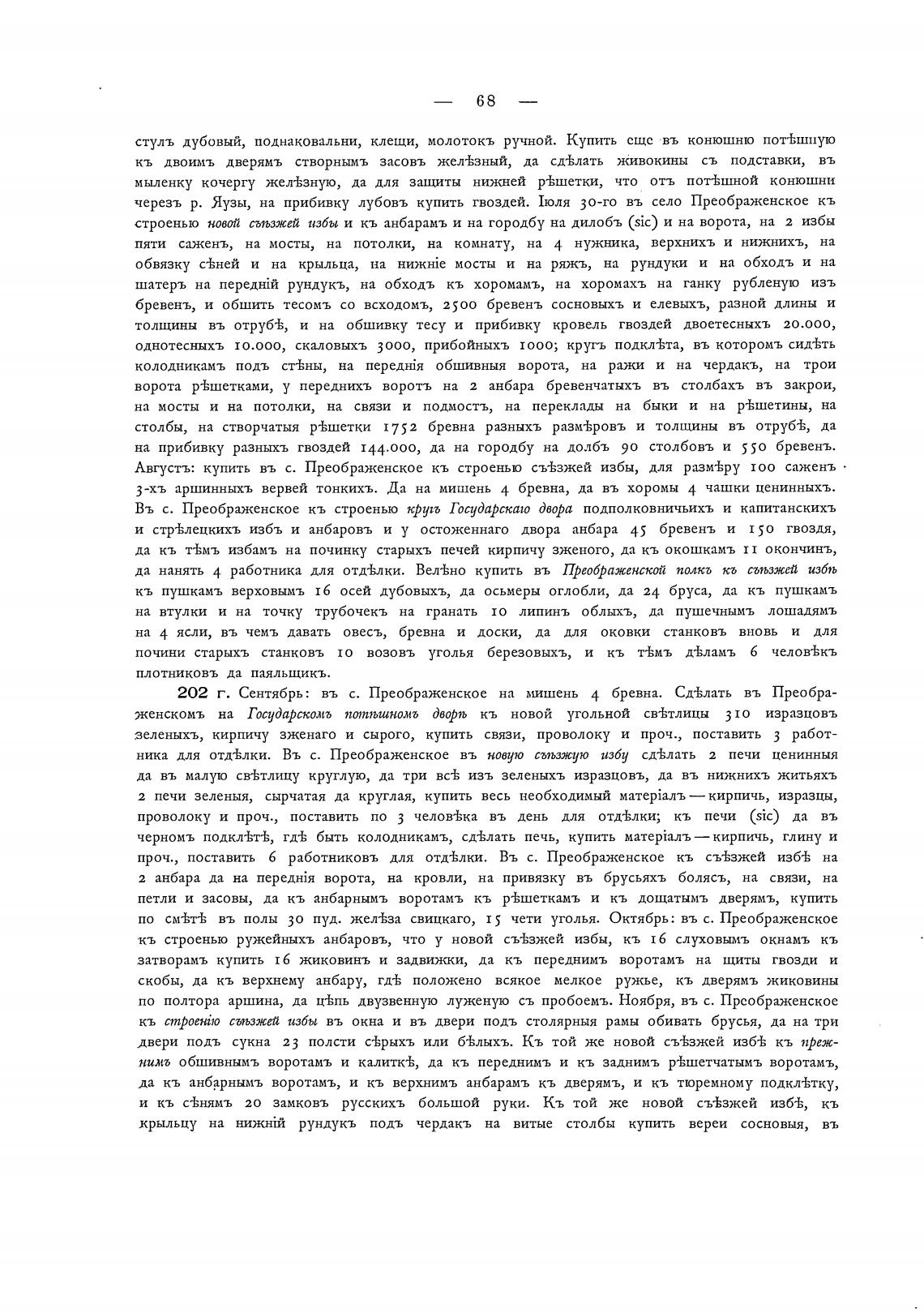 202 г. Сентябрь: въ с. Преображенское на мишень 4 бревна. Сд-Клать въ Преобра-