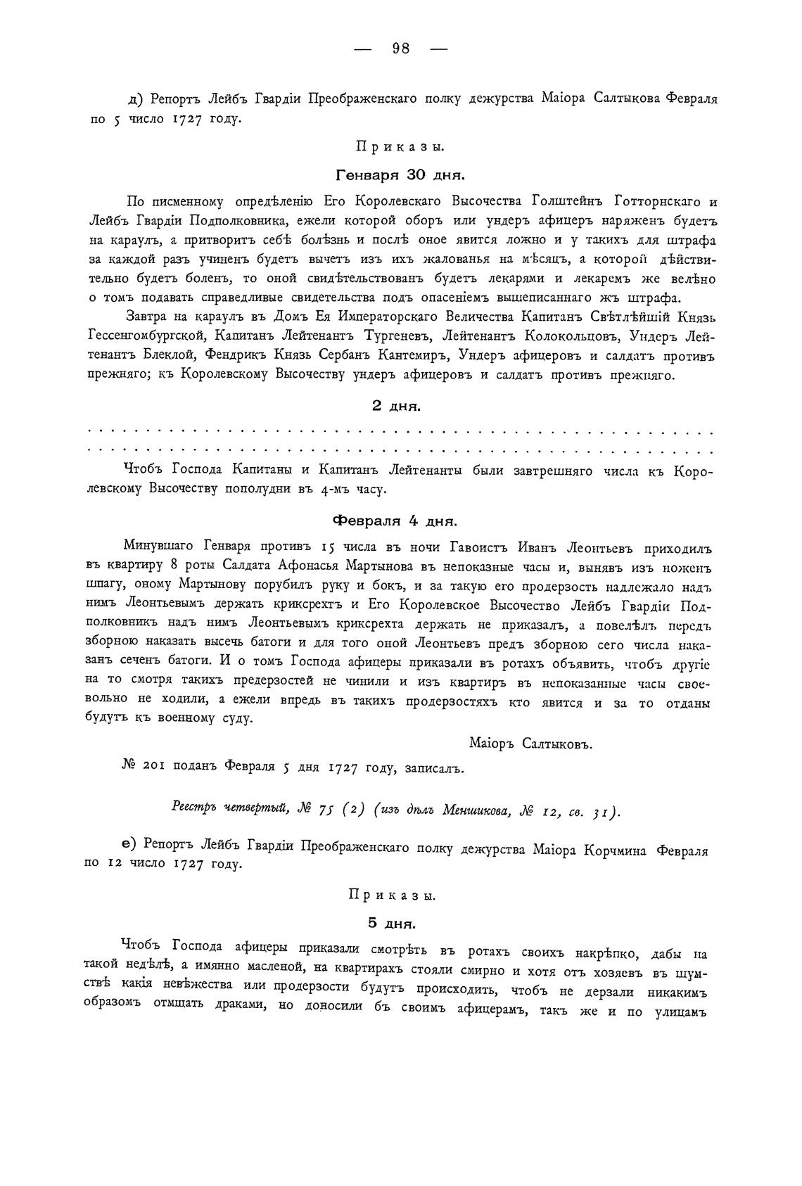 Реестръ четвертый, 75 (2) (изъ (Жль Меншикова, Л? 12, св. ; Т).