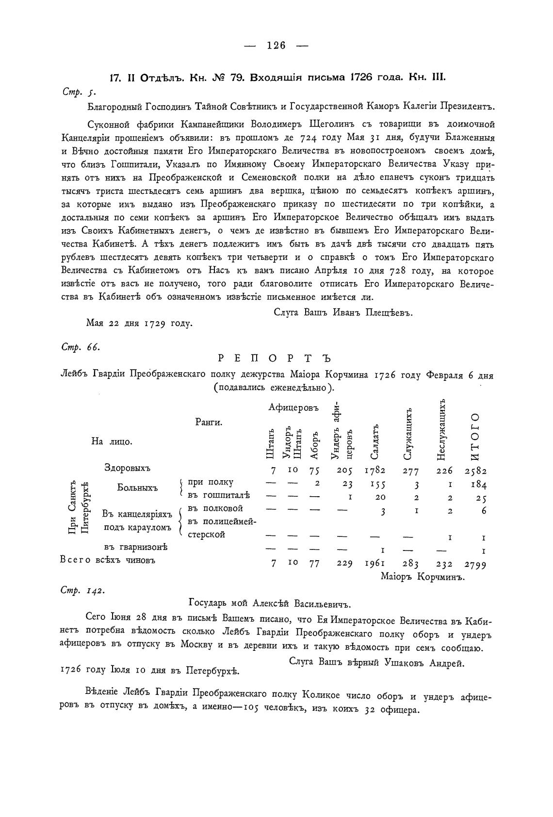 17. П отд%лъ. кн. 79. Входяијя письма 1726 года. кн. 111.