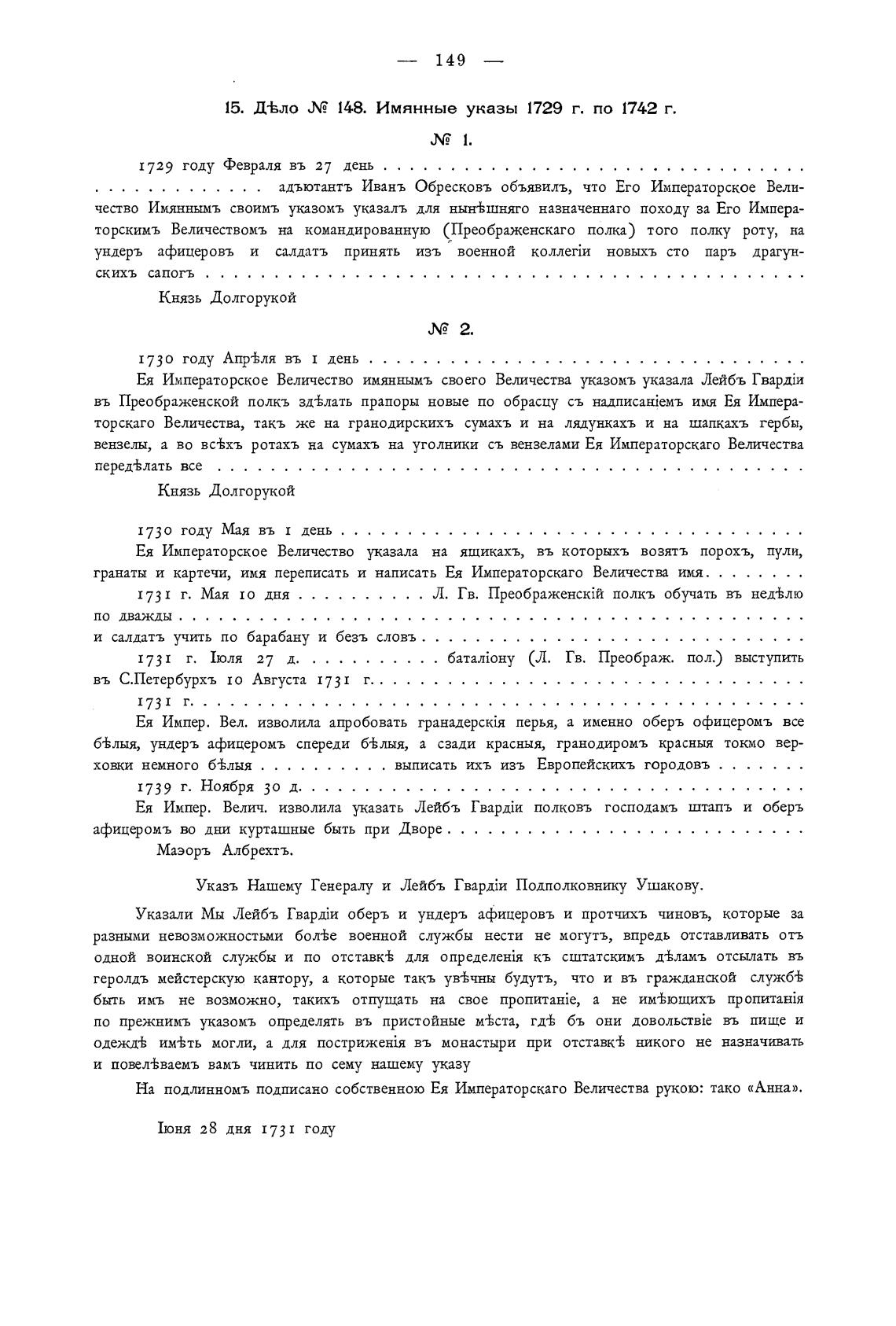15. Д-Ело Л? 148. Имянные указы 1729 г. по 1742 г.