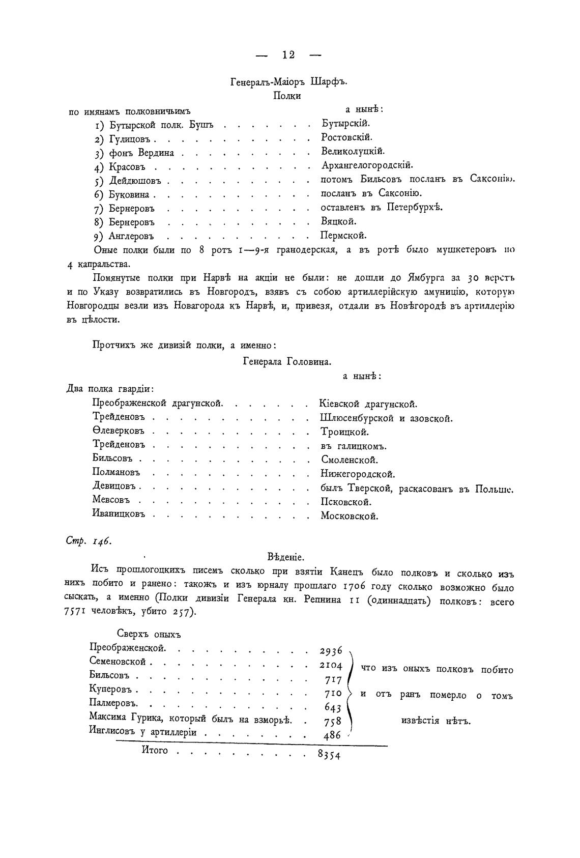 Оные полки были по 8 роть 1—9-я гранодерская, а въ ров было мушкетеровъ ио