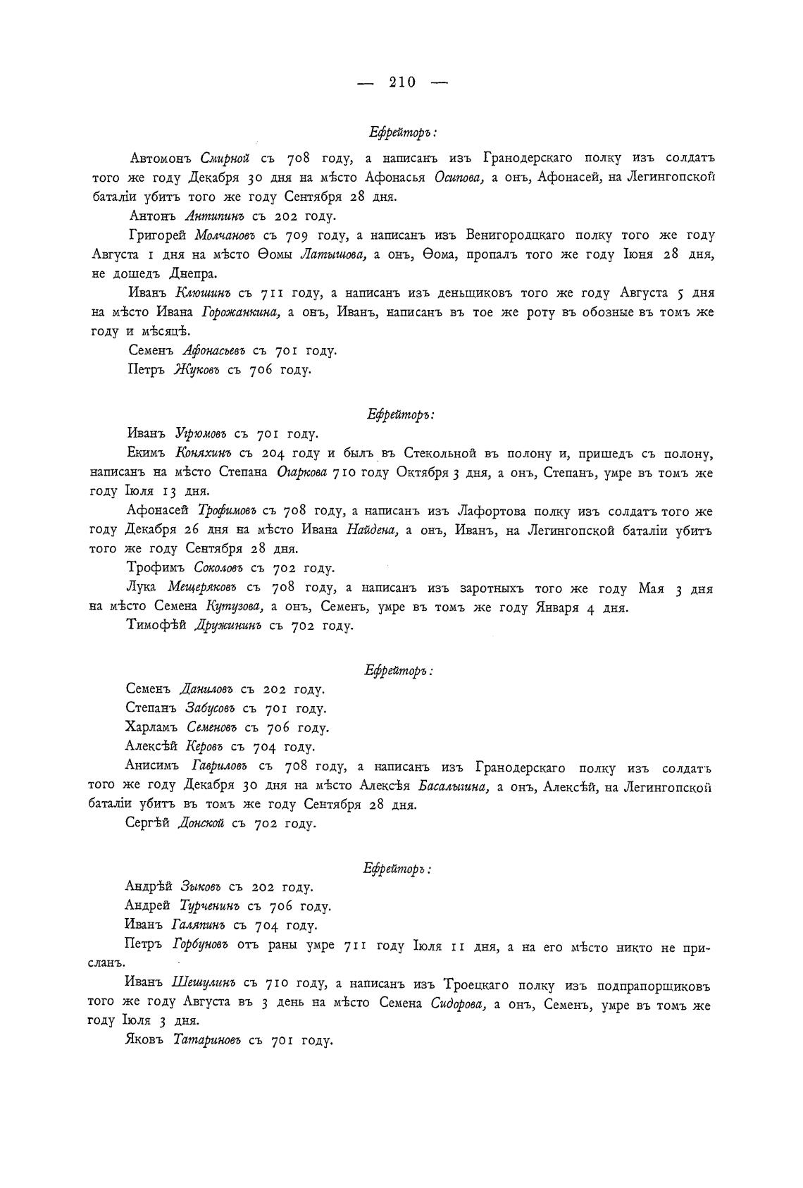 Анисимъ Гавриловъ съ 708 году, а написань изъ Гранодерскаго полку изъ солдать