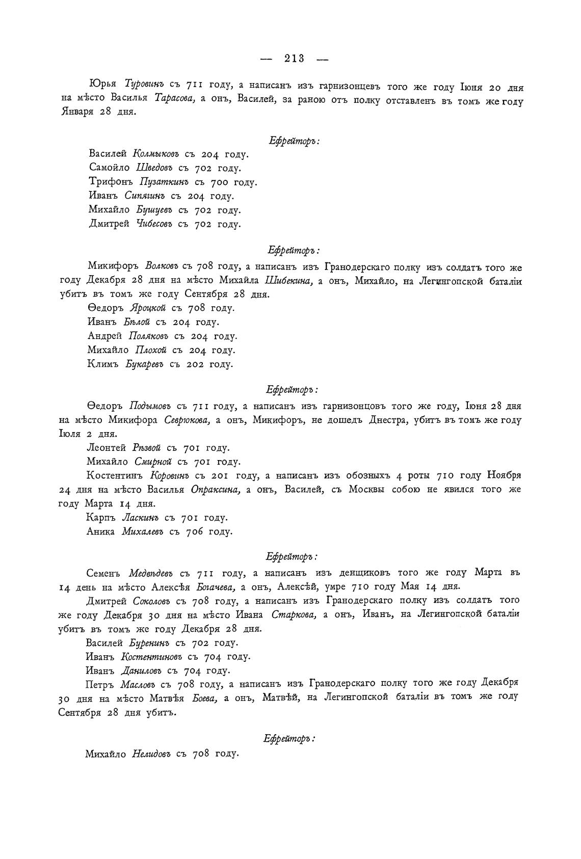 еедоръ Подымовъ съ 711 году, а написань изъ гарнизонцовъ того же году, 1юня 28 дня