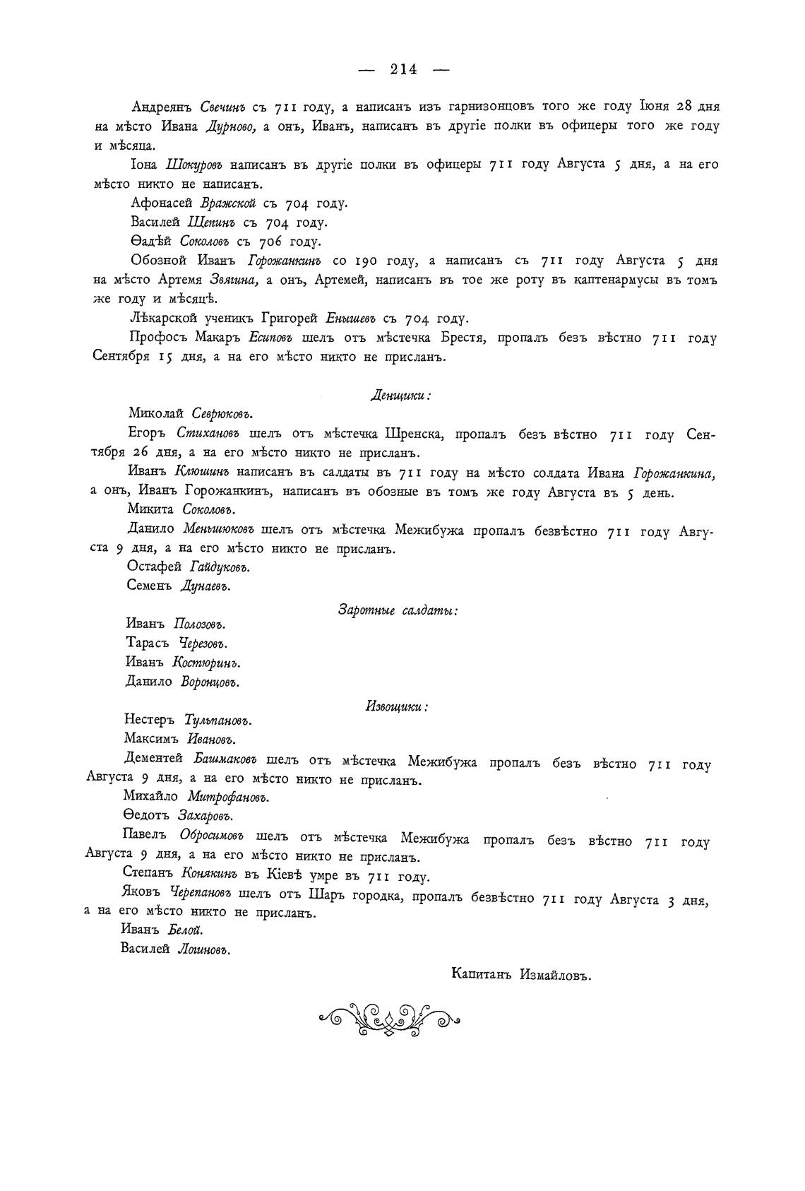 Андреянъ Свечинг съ 711 году, а написань изъ гарнизонцовъ того же году 1юня 28 дня