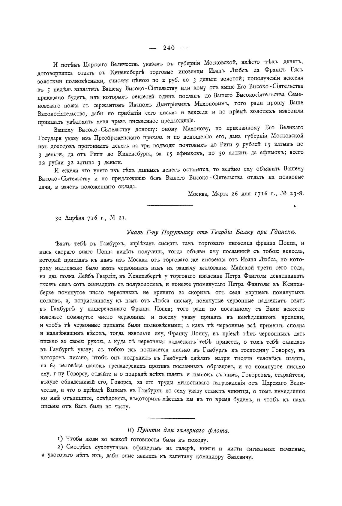 н) Пункты для галернаго флота.