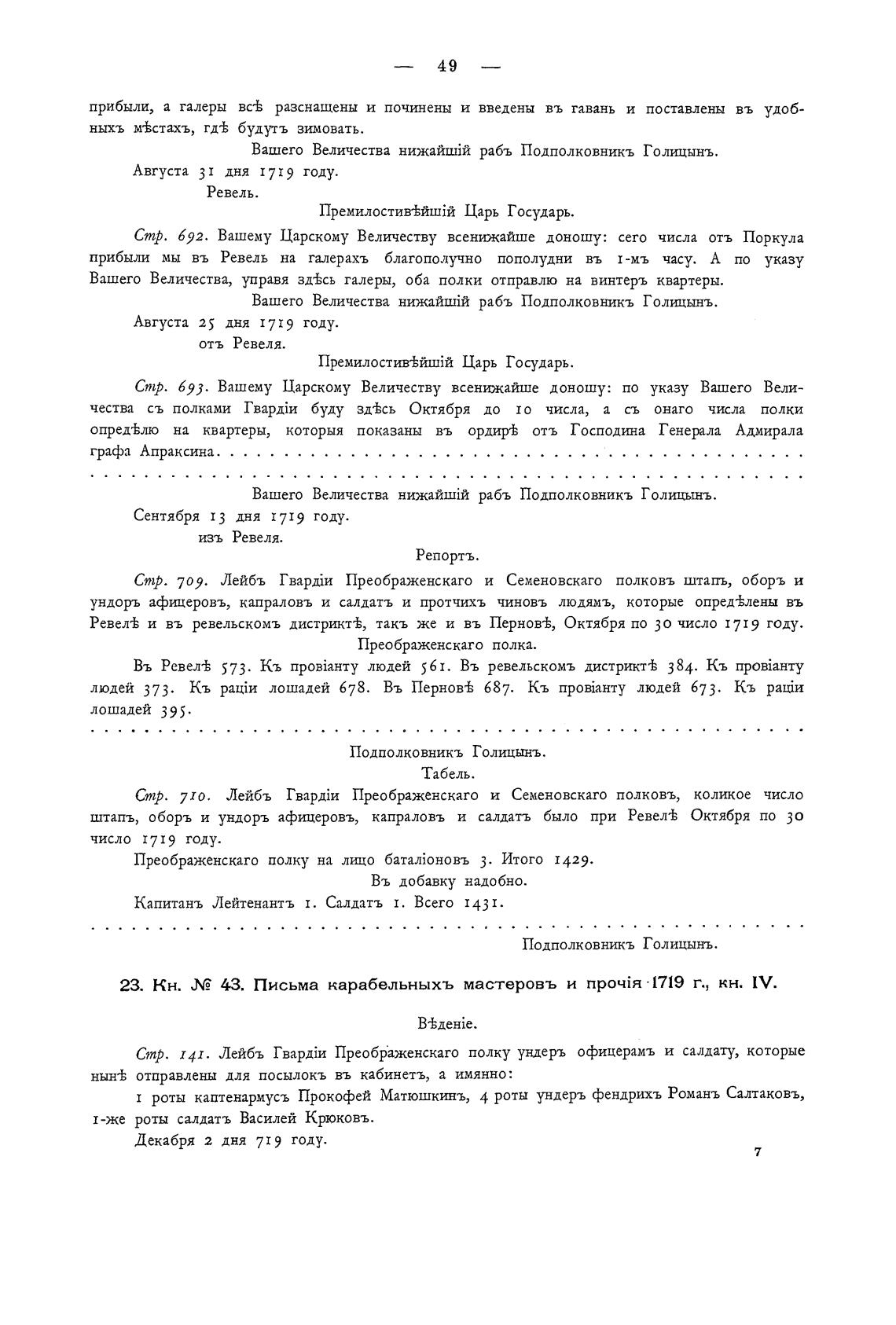 23. Кн. Л? 43. Письма карабельныхъ мастеровъ и • 1719 г., кн. IV.