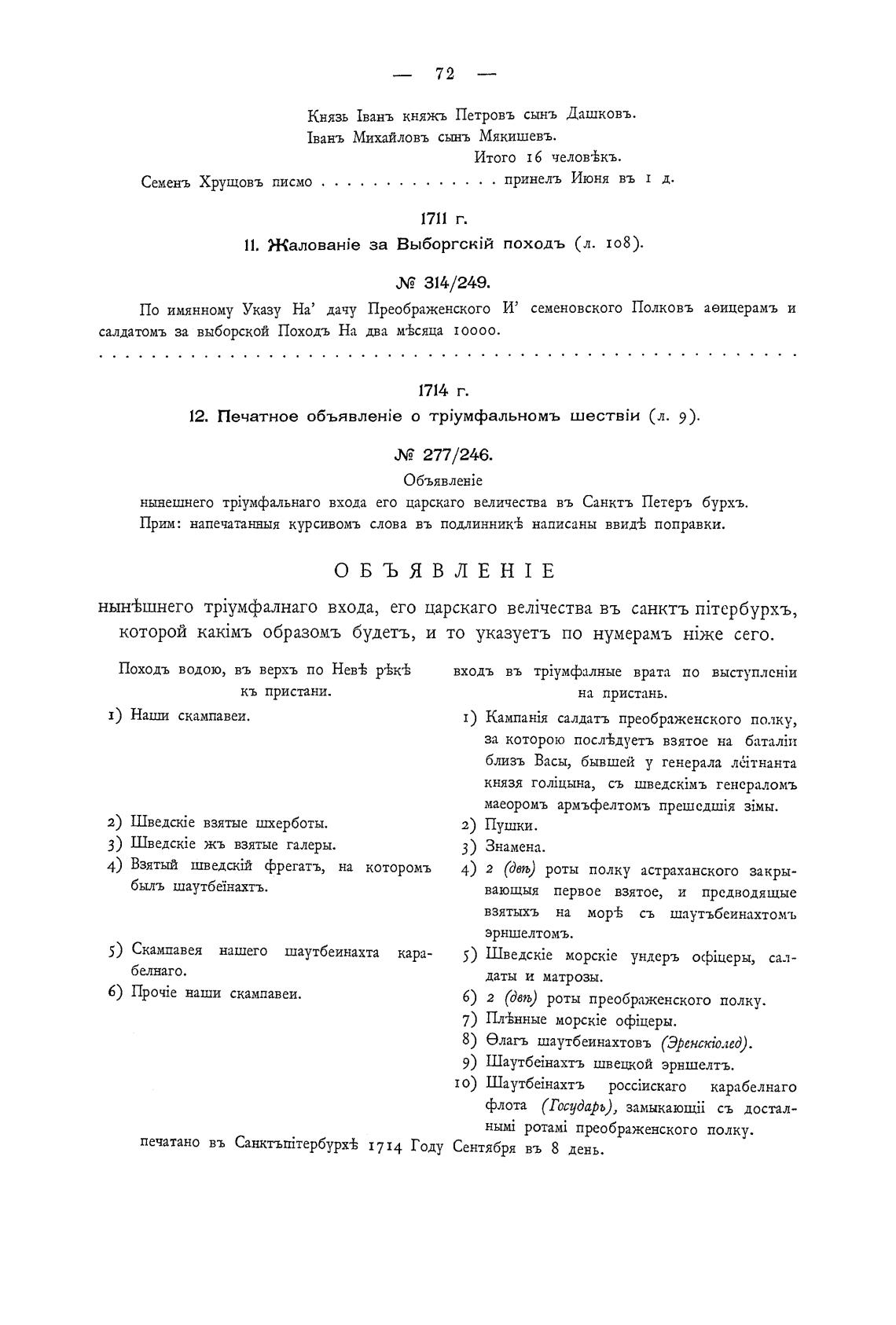 печатано въ Санктыйтербурх± 1714 Году Сентября въ 8 день.