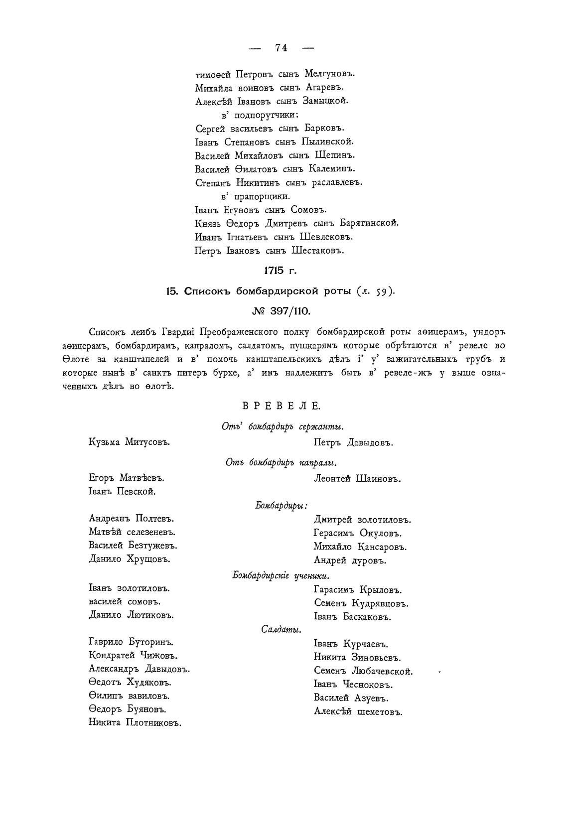15. Списокъ бомбардирской роты (л. 59).