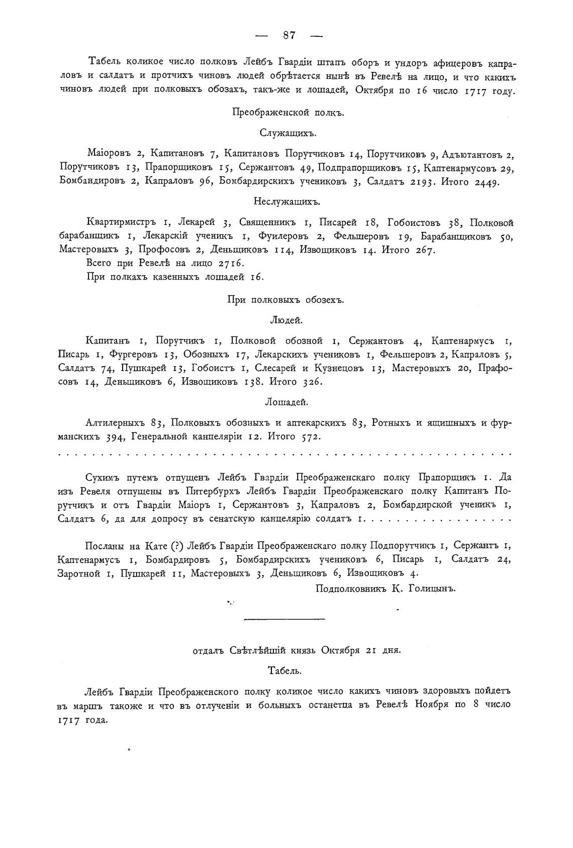изъ Ревеля отпущены въ Питербурхъ Лейбъ Преображенскаго полку Капитанъ По-